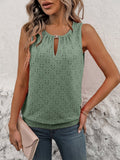 Women's Burnout Embroidery Lock Hole Collar Tank Top