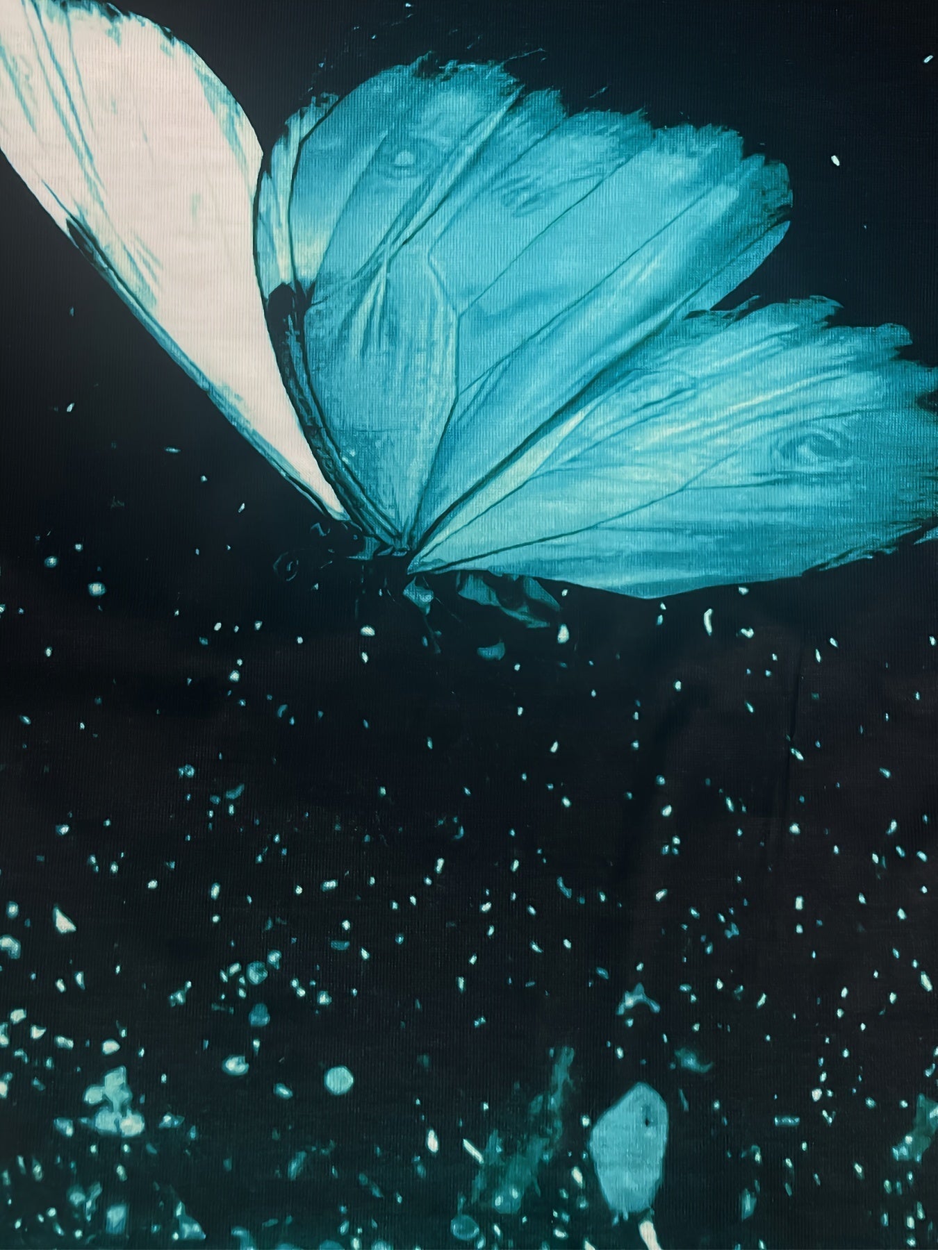Shiny Butterfly Print Crew Neck T-Shirt, Casual Long Sleeve T-Shirt