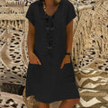 Short Sleeve Solid V Neck Casual Kaftan Pocket Loose Midi Dresses