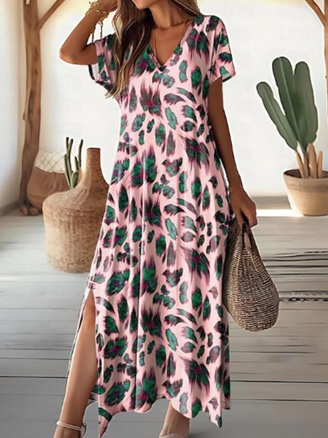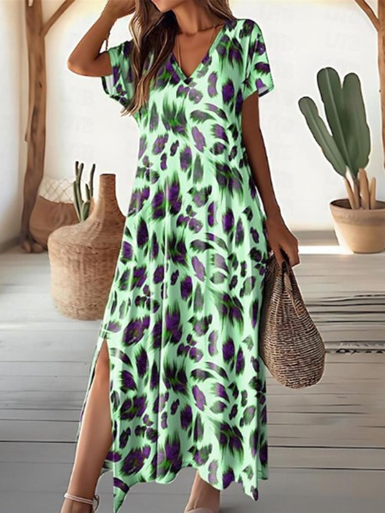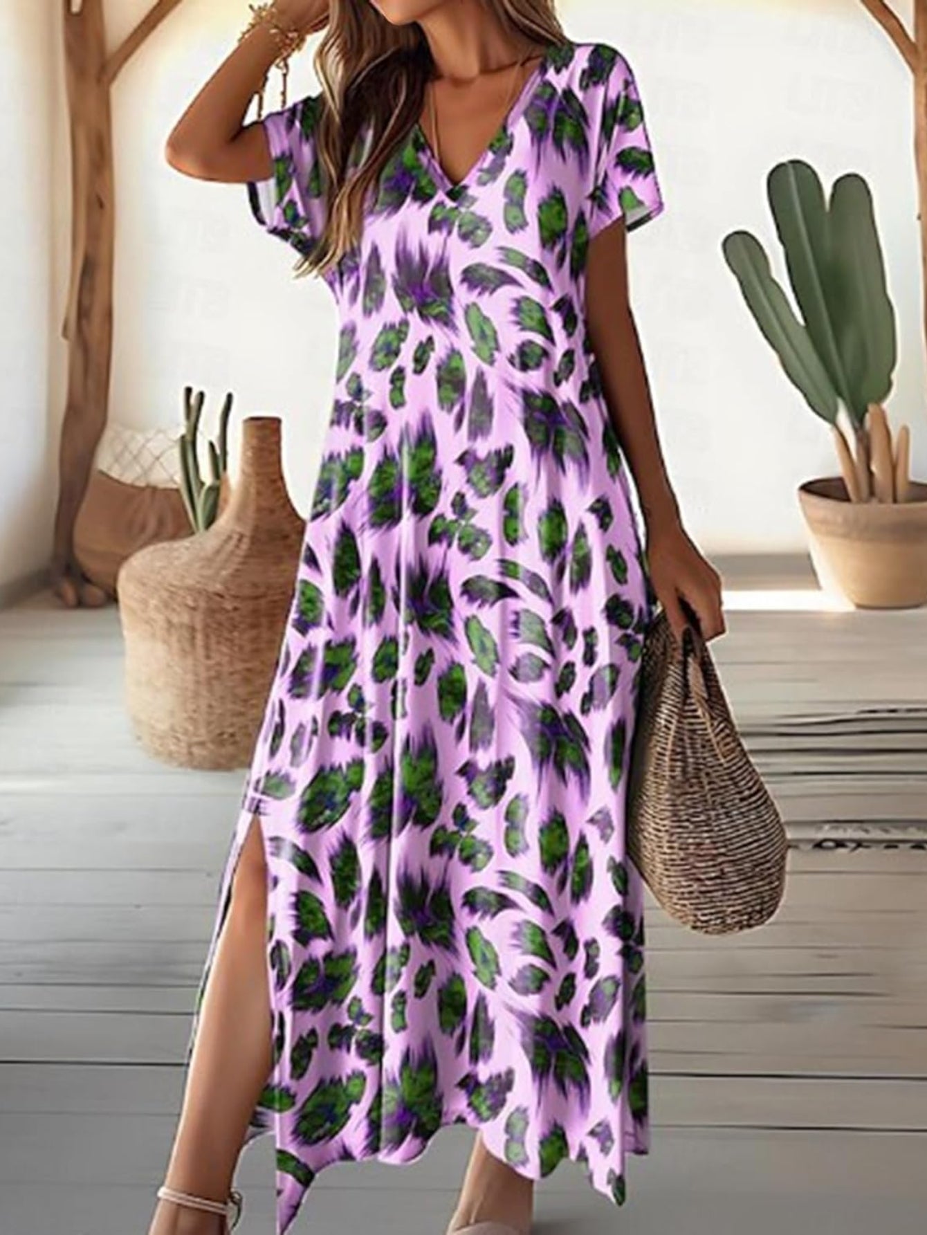 Sale Short Sleeve V Neck A Line Maxi Dress