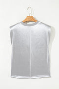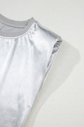 Silvery Metallic Luster Crew Neck Shift Tank Top