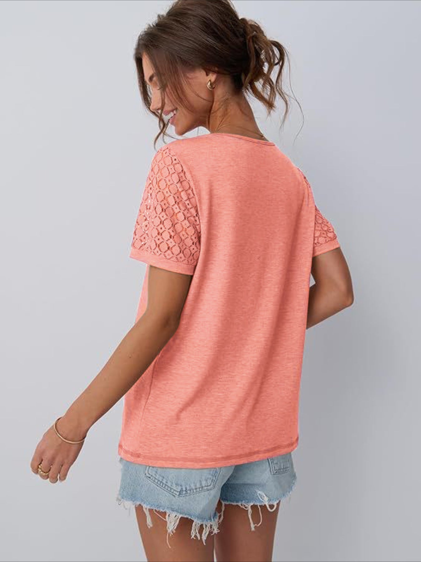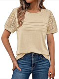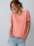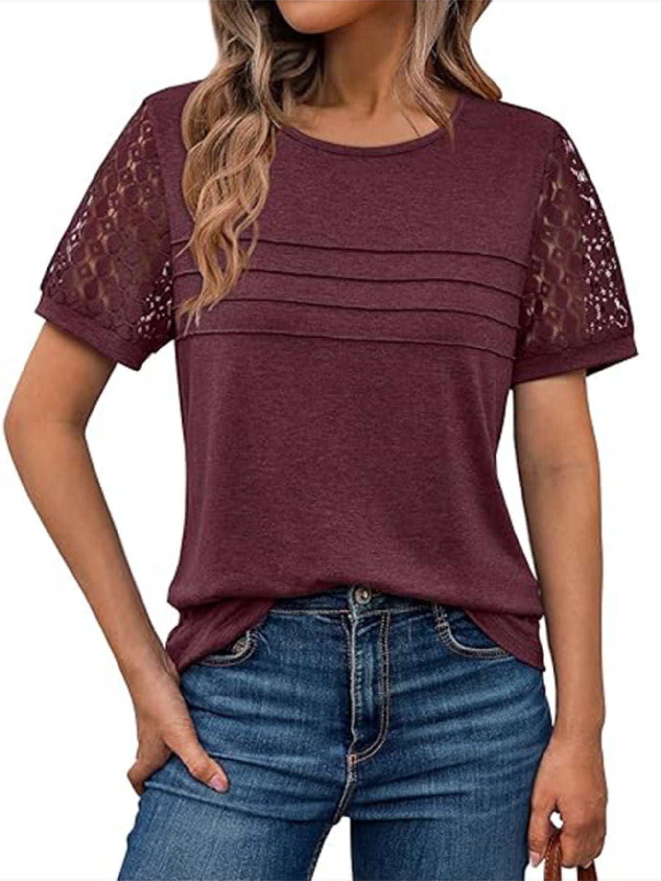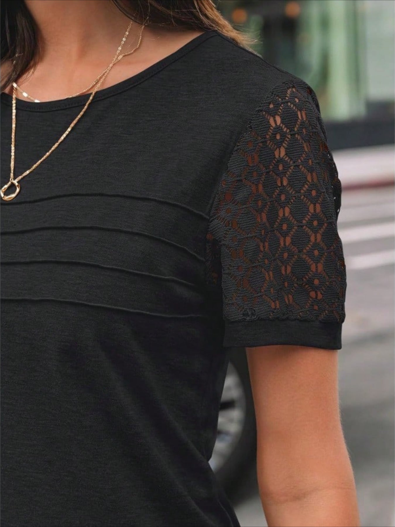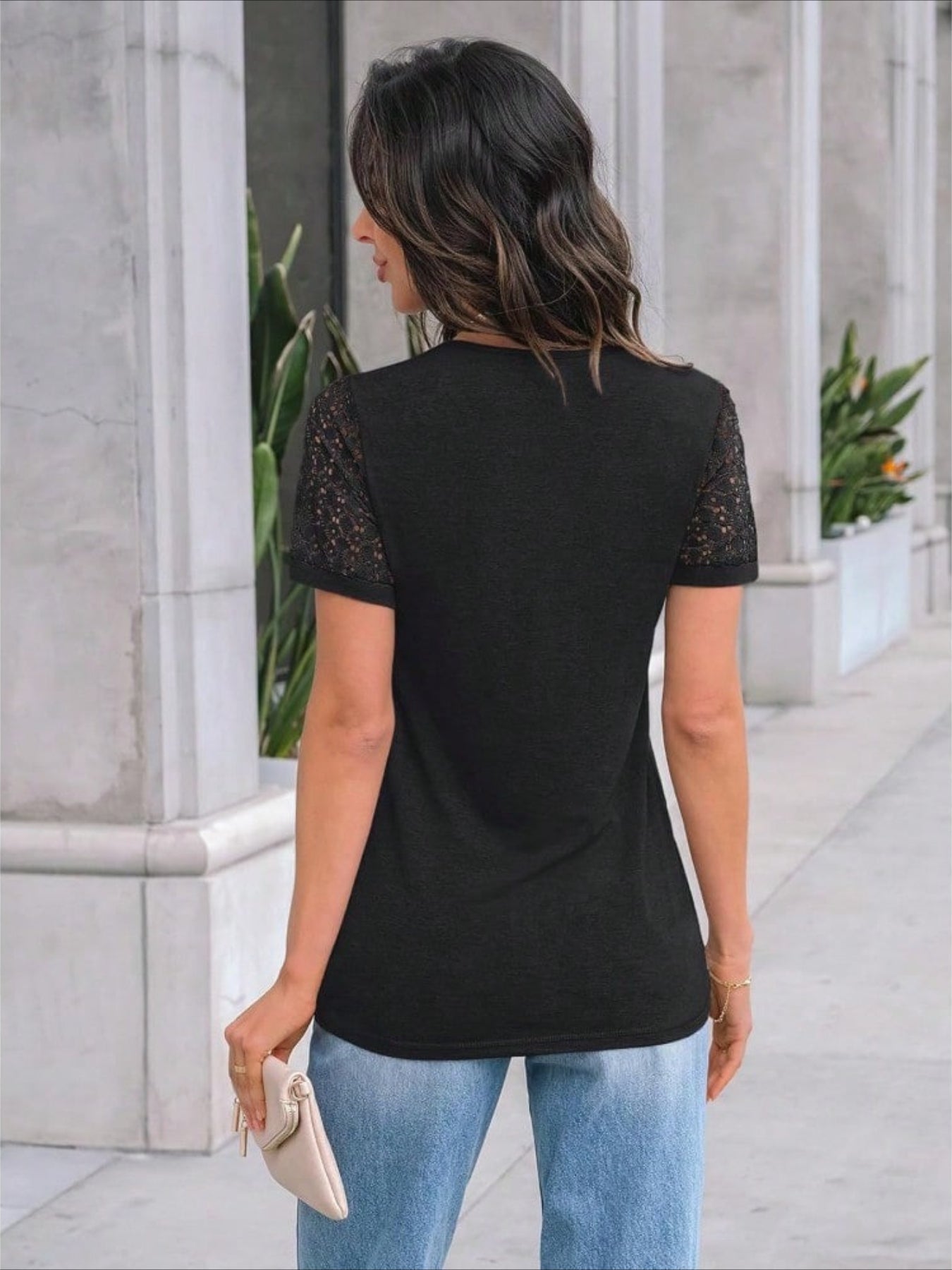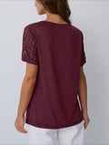 Sale Casual Contrast Lace Round Neck Long Sleeve T-Shirt