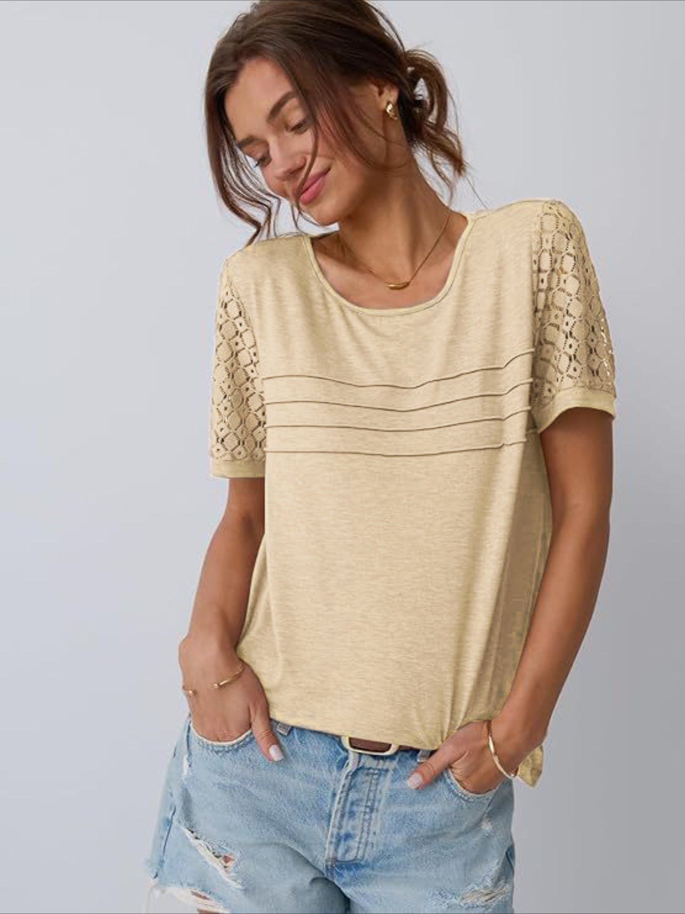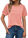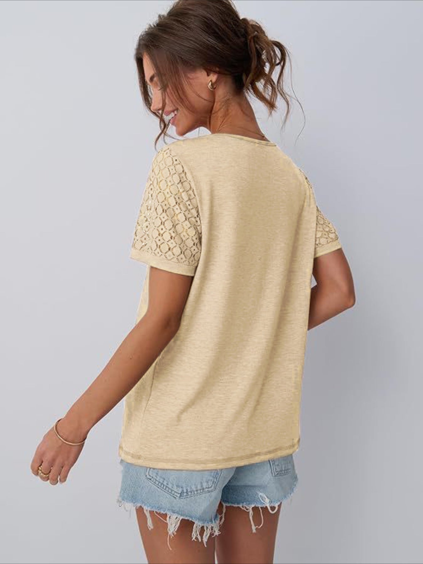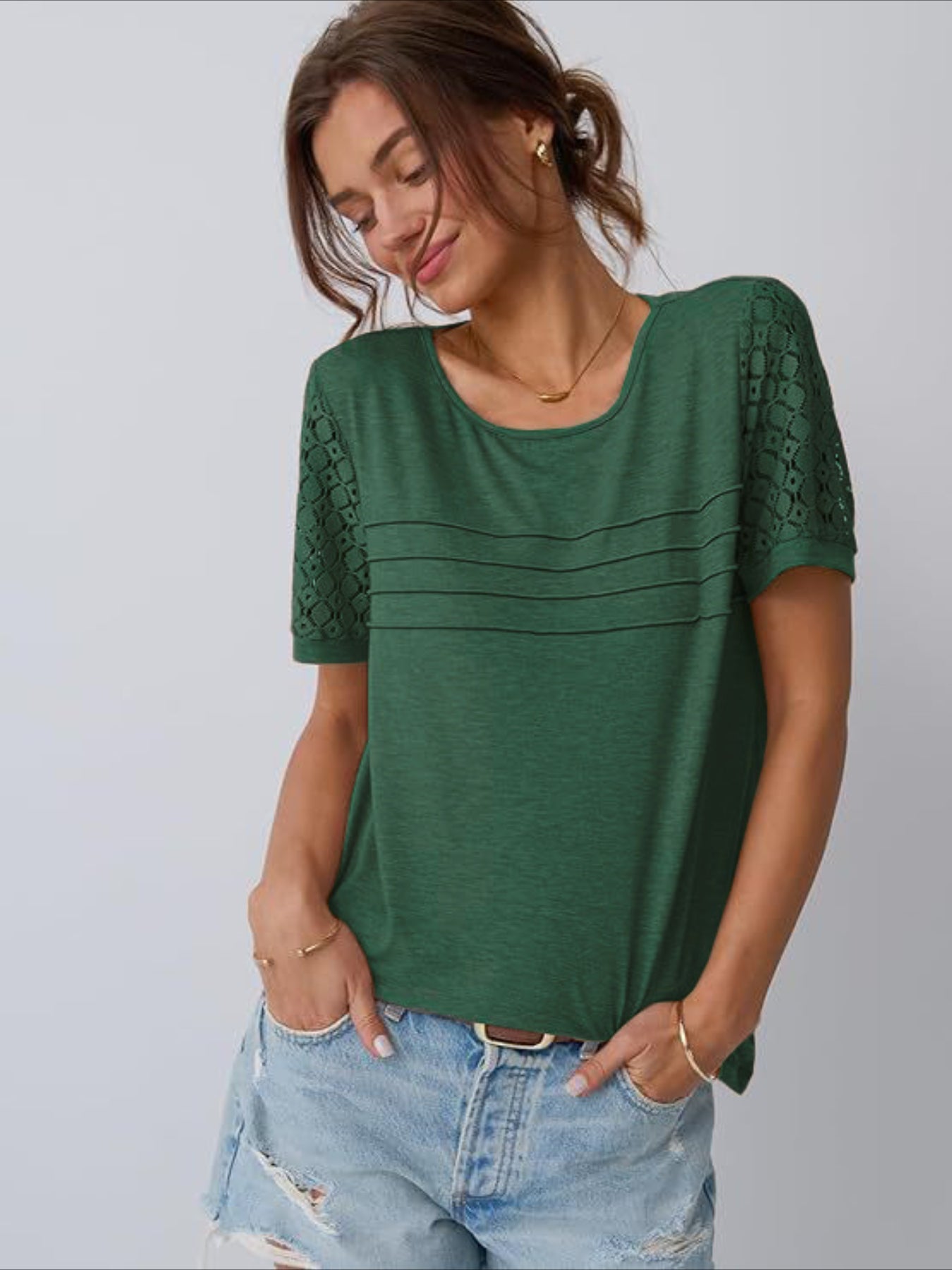 Sale Casual Contrast Lace Round Neck Long Sleeve T-Shirt