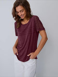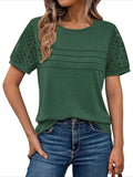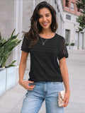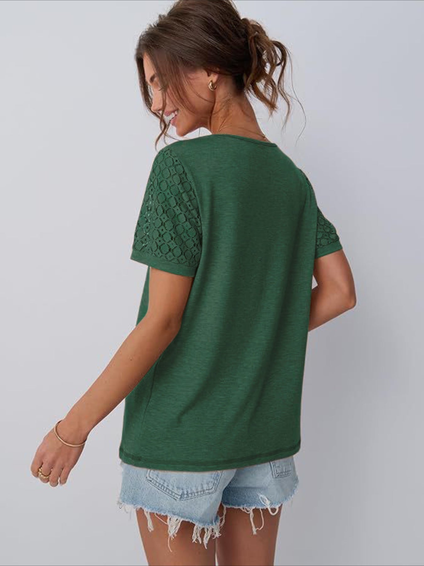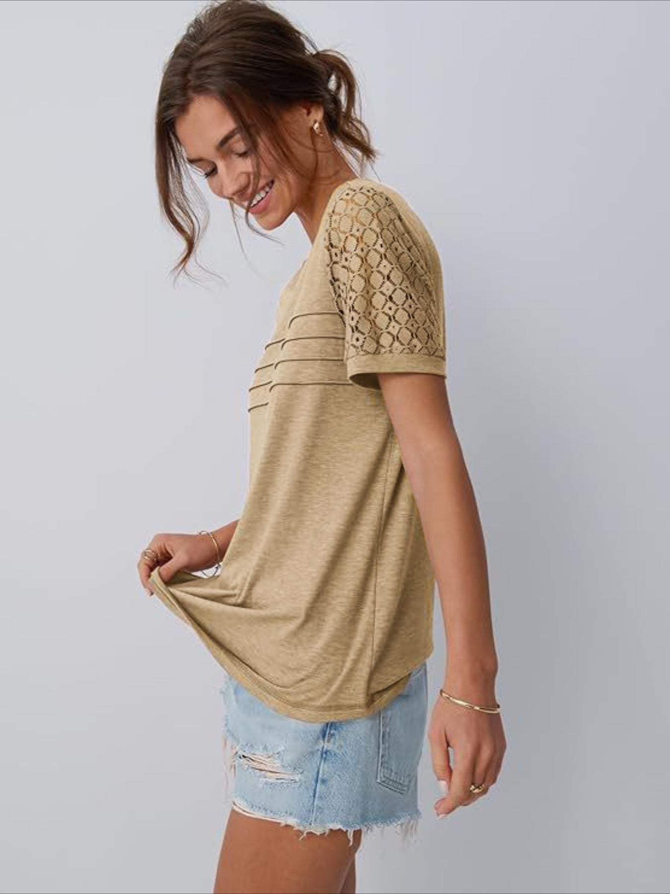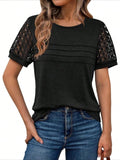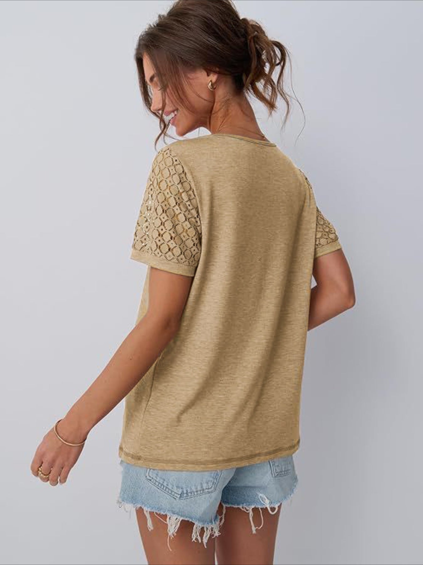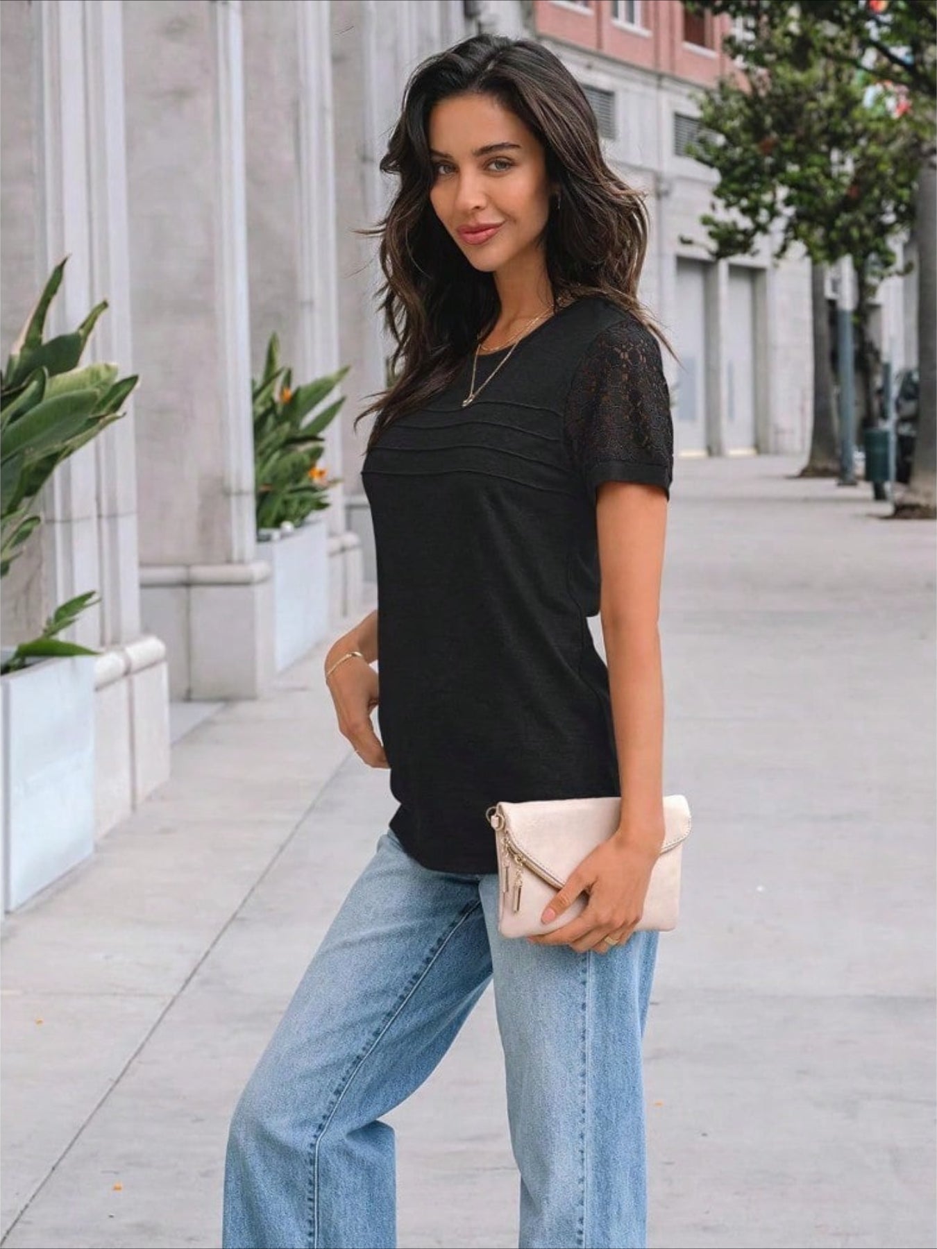 Sale Casual Contrast Lace Round Neck Long Sleeve T-Shirt