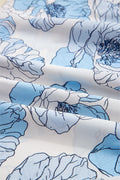 Sale Blue Floral Long Sleeve Lace-up V Neck Blouse