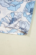 Sale Blue Floral Collared V Neck Roll up Sleeve Shift Blouse