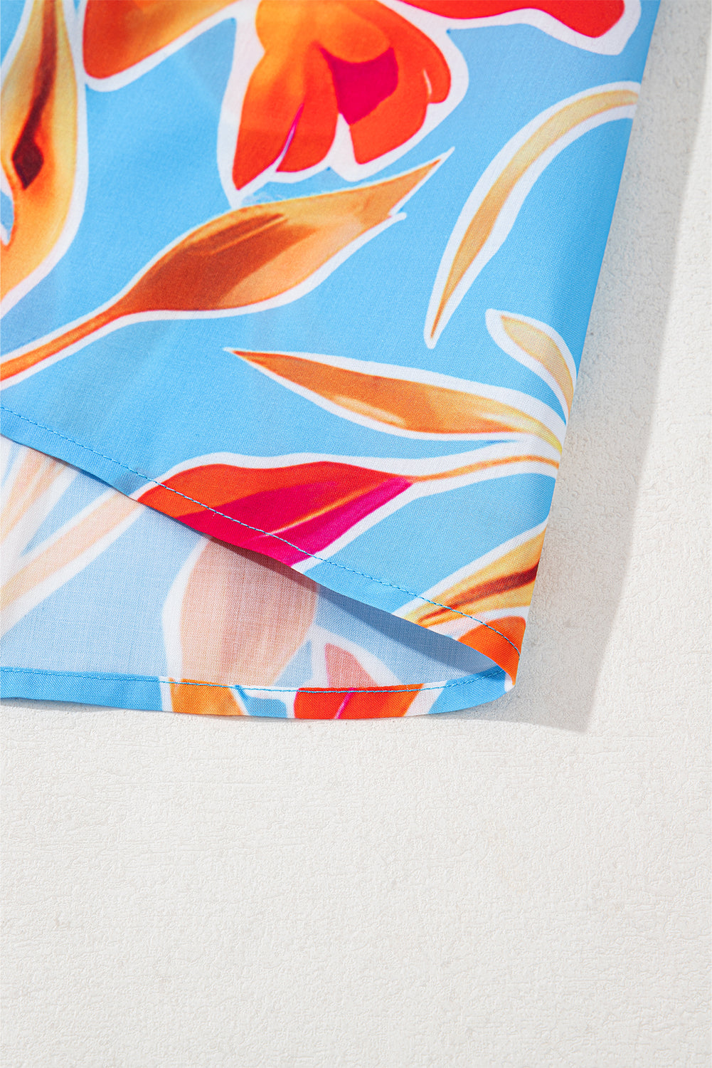 Sale Blue Floral Collared V Neck Roll up Sleeve Shift Blouse