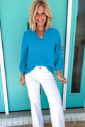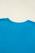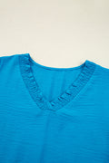 Sale Sky Blue Frilled V Neckline Bracelet Sleeve Crinkled Blouse