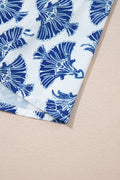 Sale Blue Floral Long Sleeve Lace-up V Neck Blouse