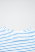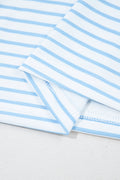 Sky Blue Stripe Floral Three Quarter Sleeves Patchwork Drop Shoulder Top