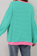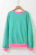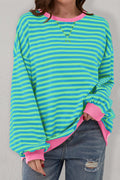 Sale Sky Blue Stripe Oversized Contrast Trim Pullover Sweatshirt
