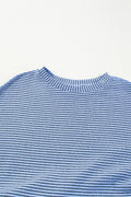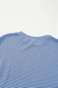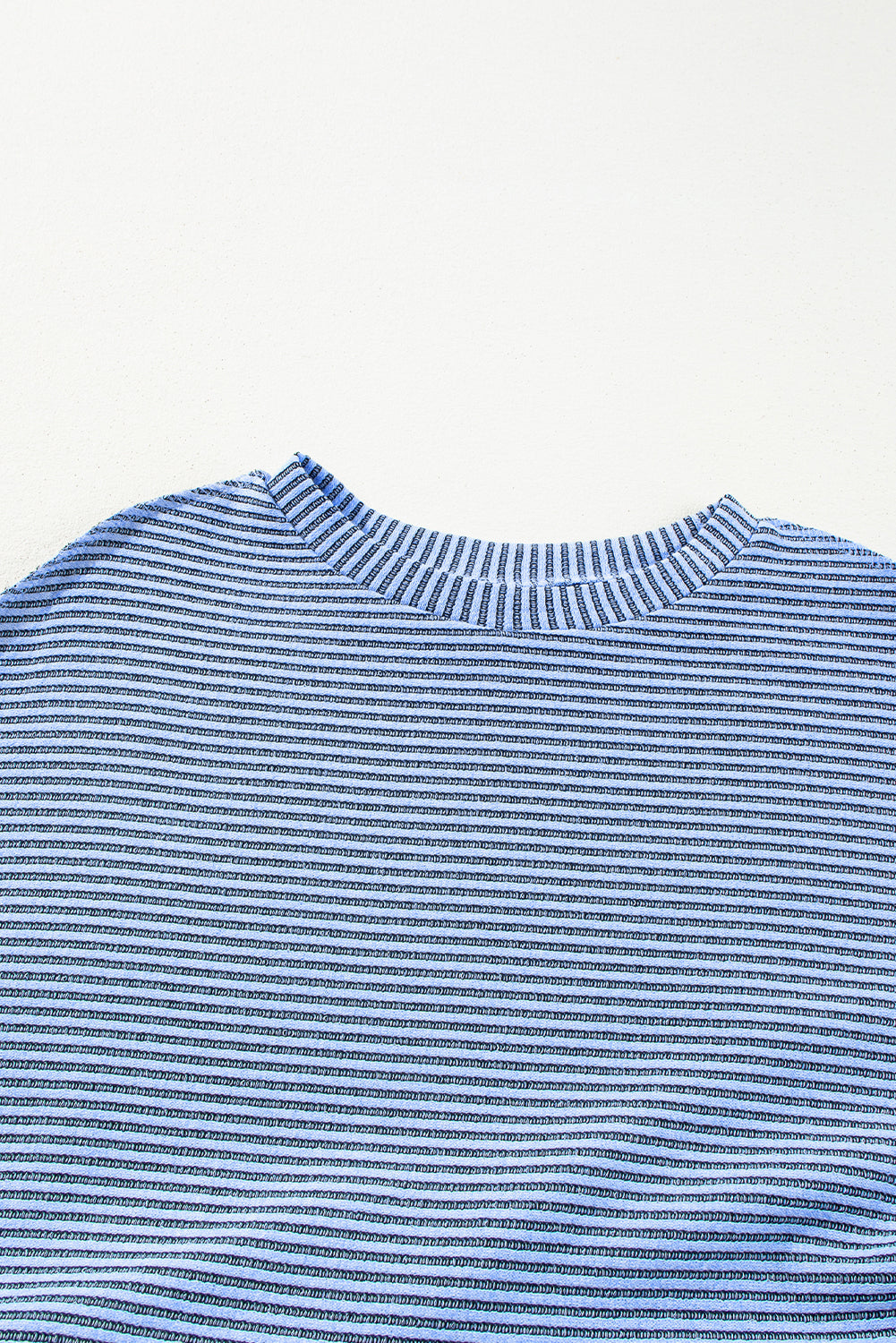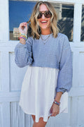 Sale Sky Blue Stripe Patchwork Pleated High Waist Loose Mini Dress