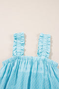 Sky Blue Tribal Pattern Print Ruffled Wide Straps Loose Tank Top