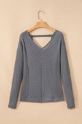 Sleet V Neck Chevron Texture Patchwork Long Sleeve Knit Top