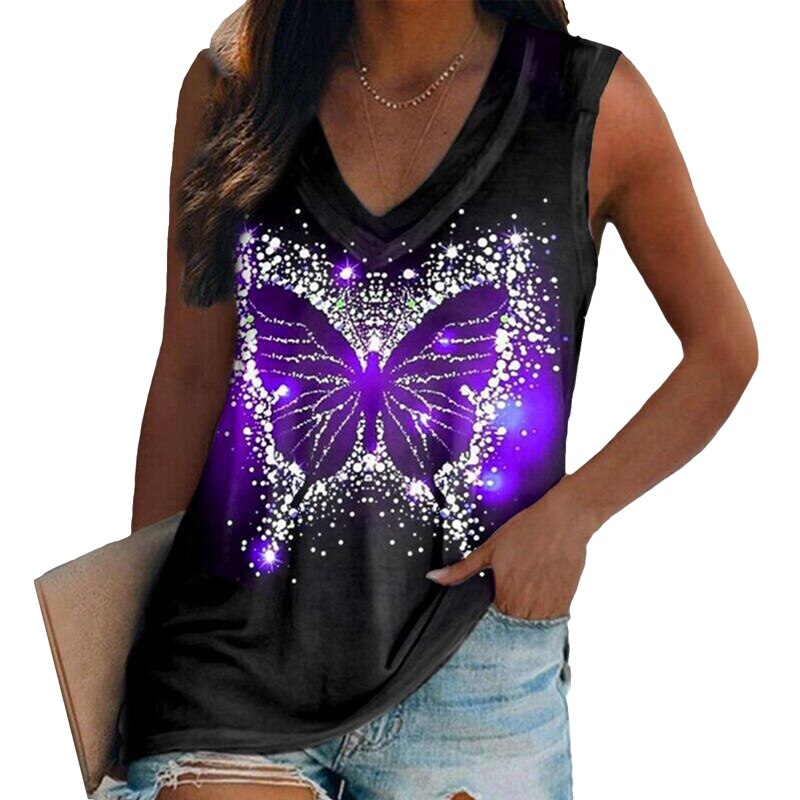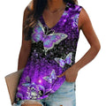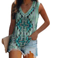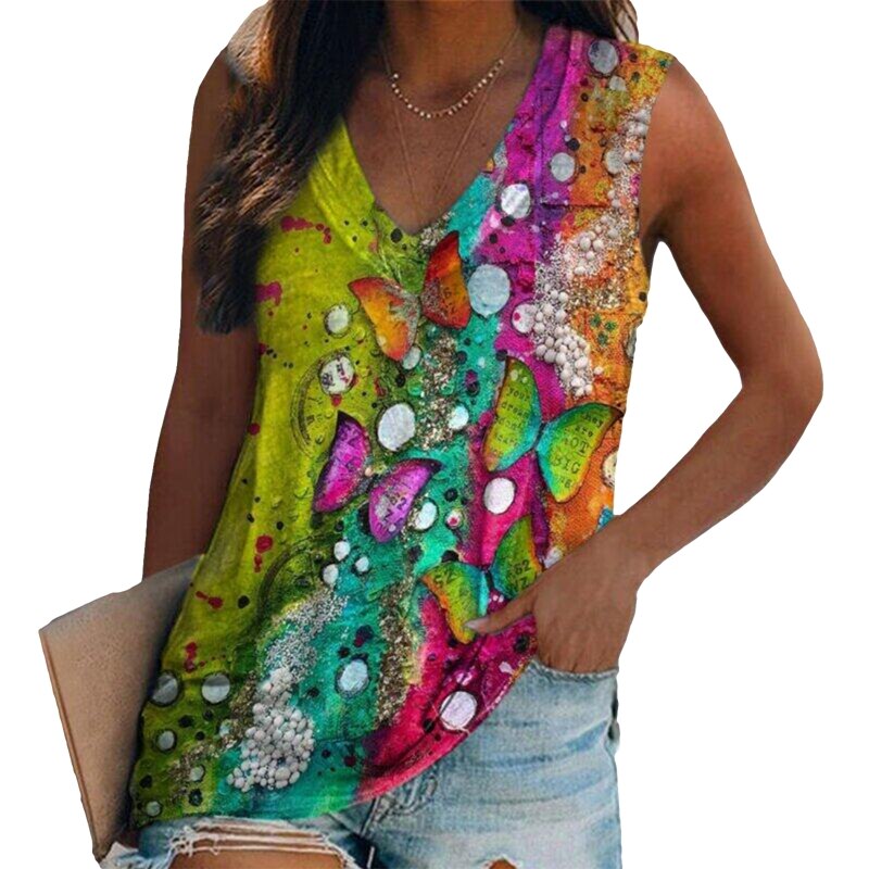 Sale Sleeveless Multi-pattern Print V-neck Loose Tank Top