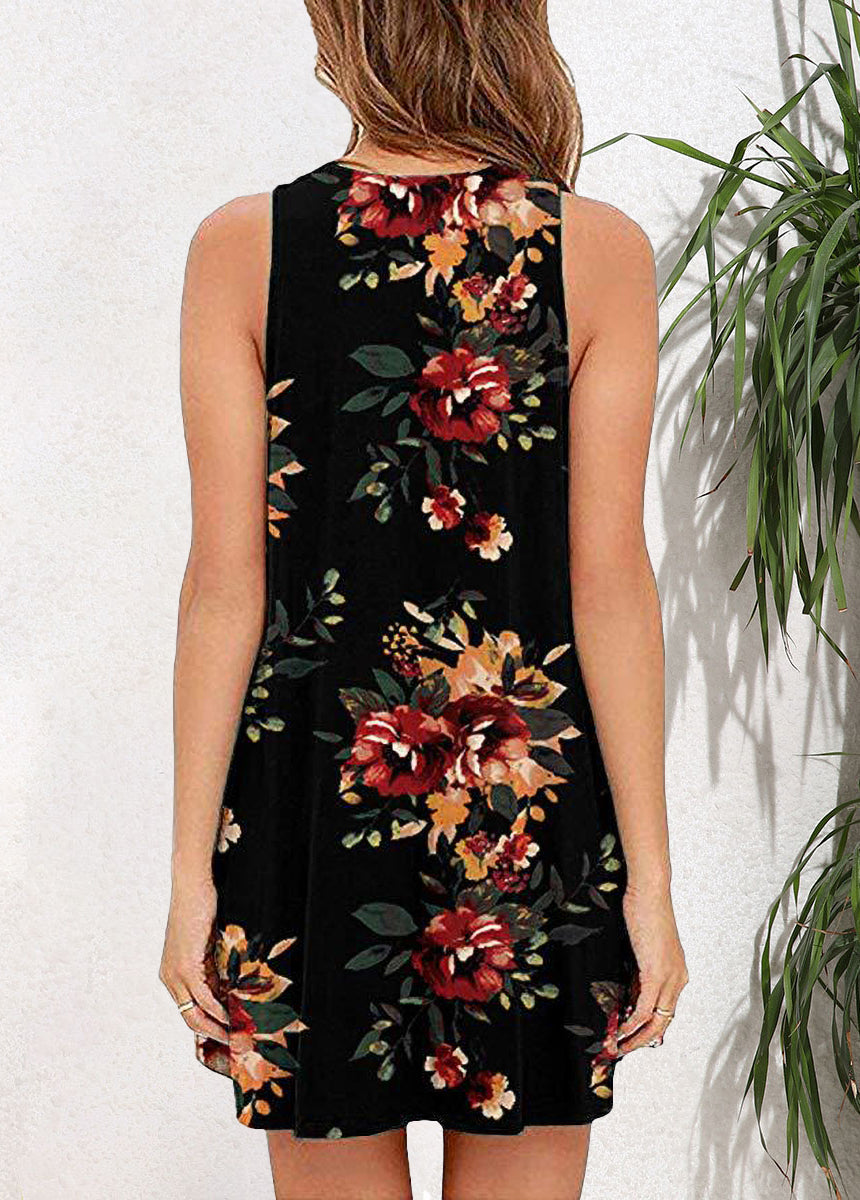 Sale Sleeveless Pullover Printed Pocket Swing Round Neck Vest Dress