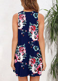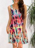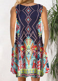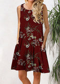 Sleeveless Pullover Printed Pocket Swing Round Neck Vest Dress