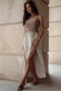 Smoke Gray Ribbed Knit Colorblock Edge U Neck Slim Fit Tank Top