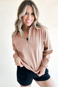 Sale Cozy Textured Quarter Zip Pullover Sweatshirt