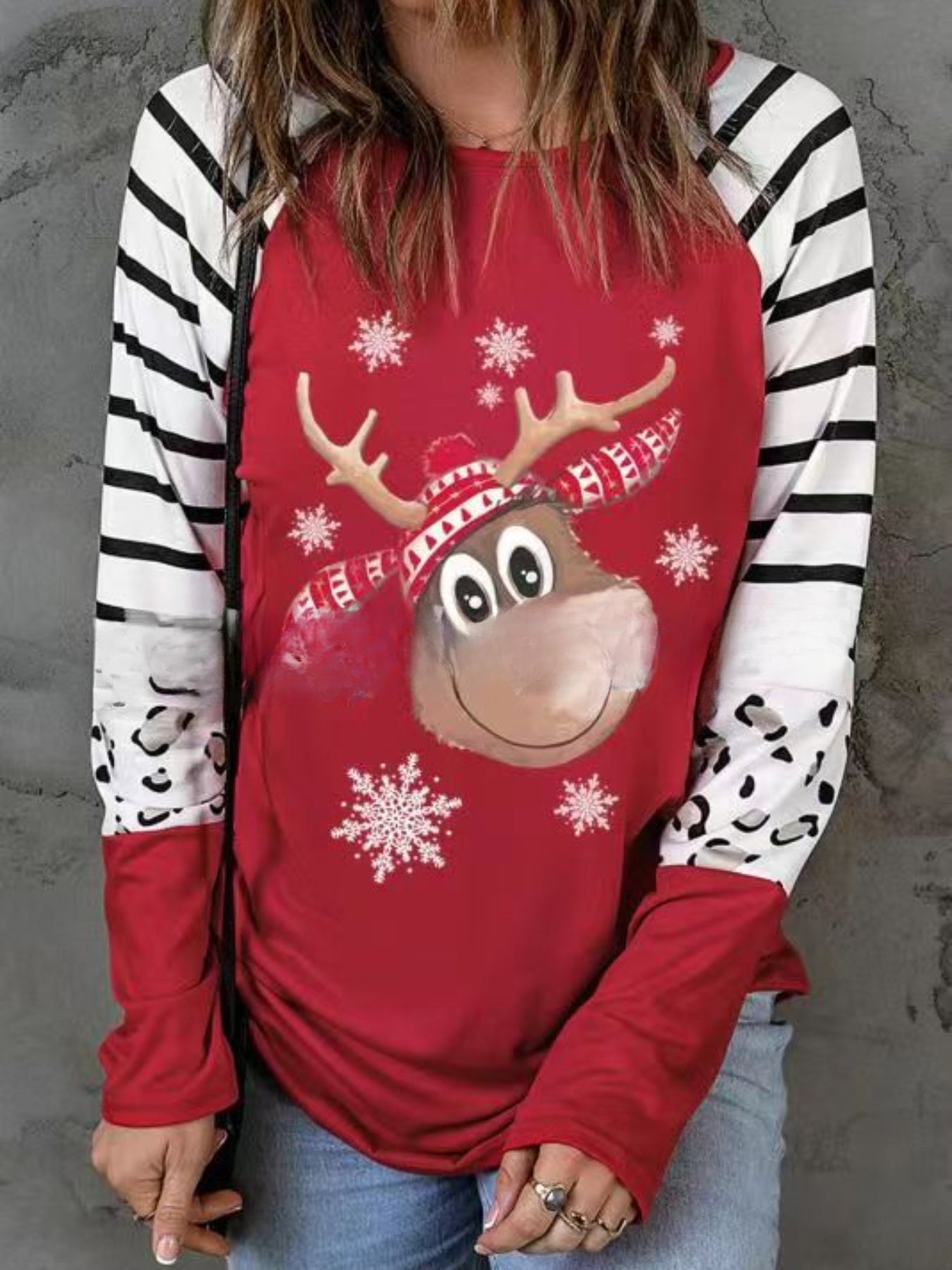 Christmas Printing Crew Neck Floral Long Sleeve Comfy Casual Sweater Hoodie