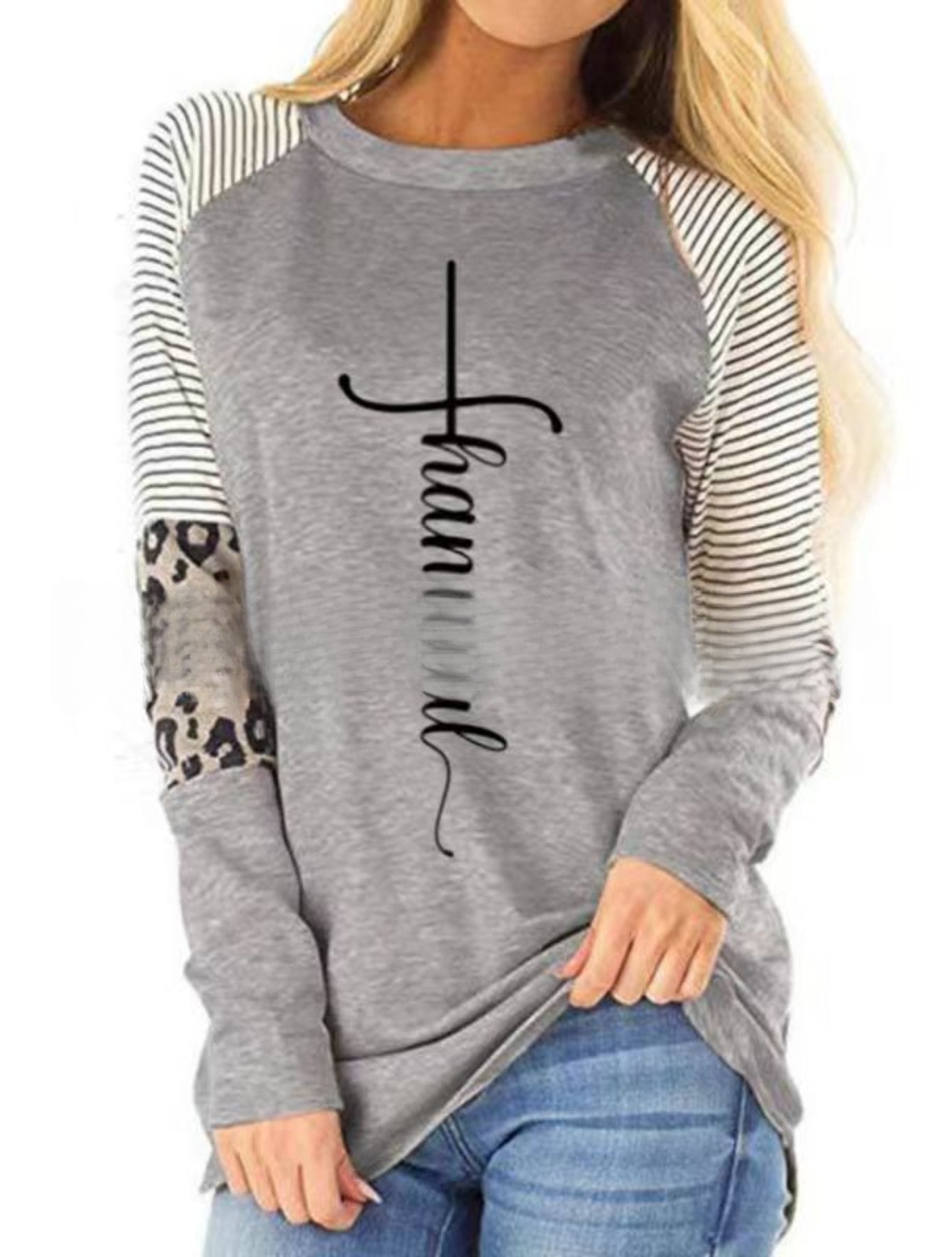 Sale Graphic Geometric Striped Elegant Vintage Fashion Long Sleeve Crew Neck Regular Tops