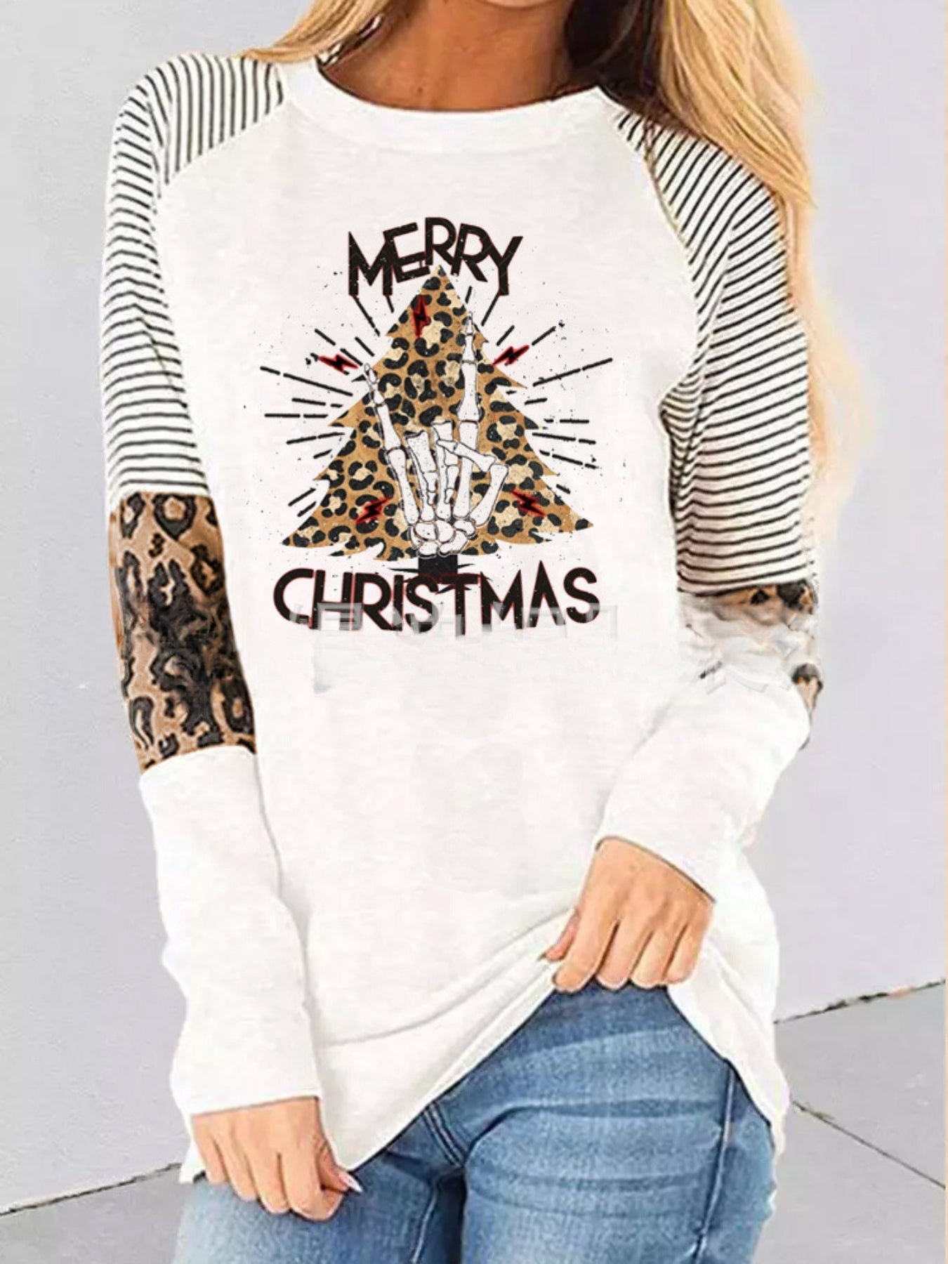 Casual Christmas Tree Printing Long Sleeve Sweatshirt