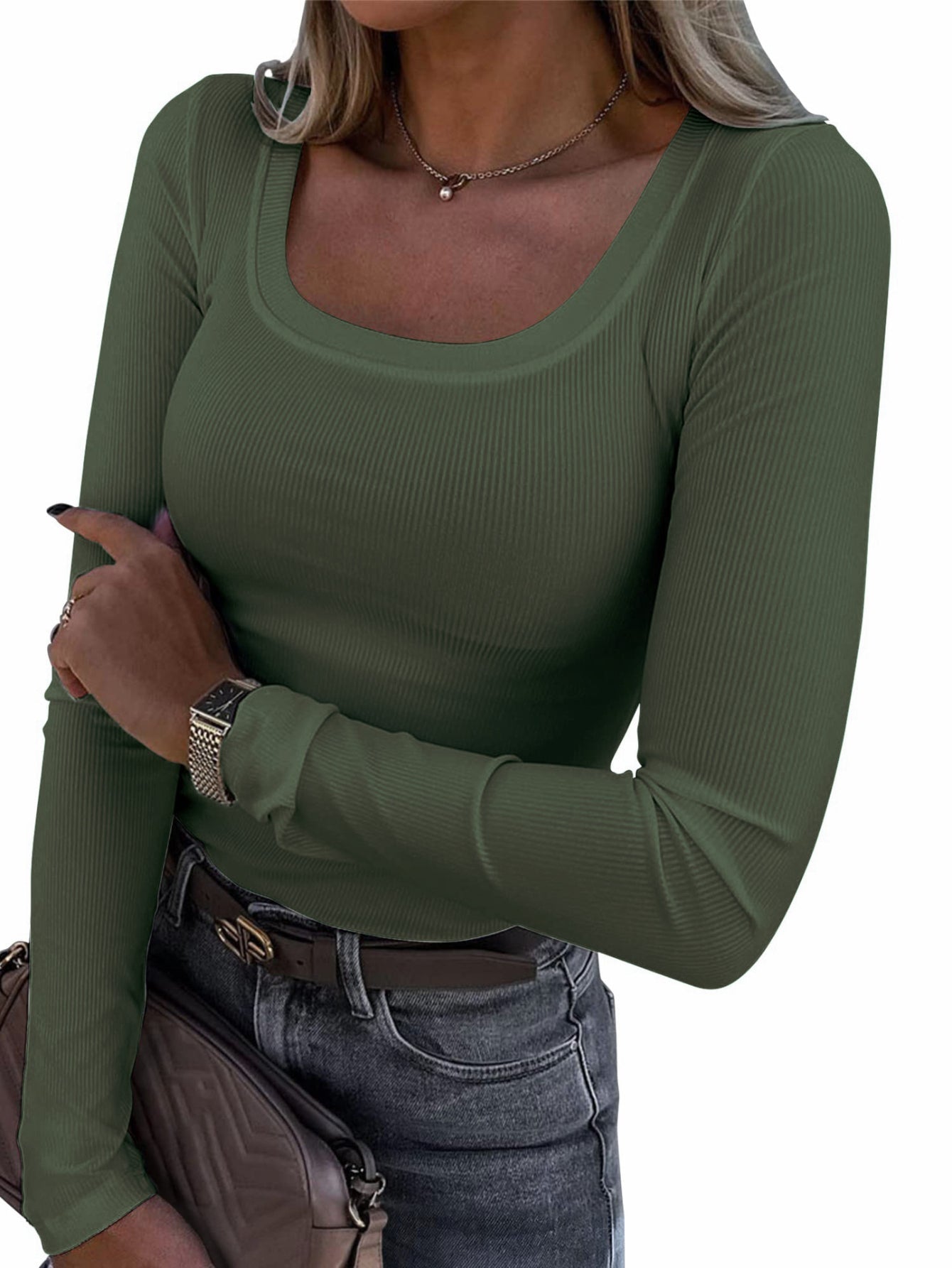 Sale Casual Long Sleeve Square Neck T-shirt