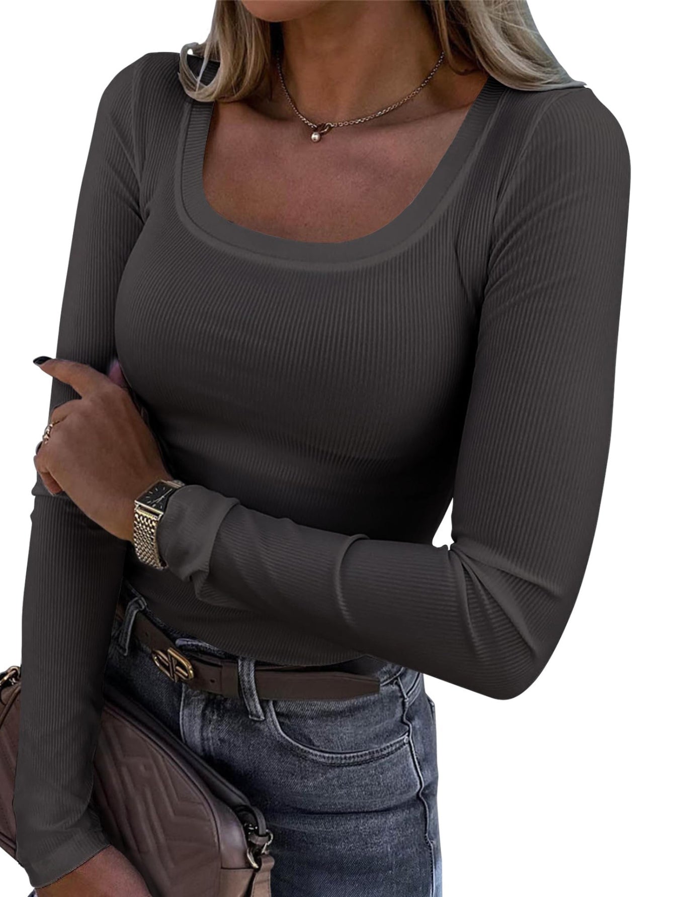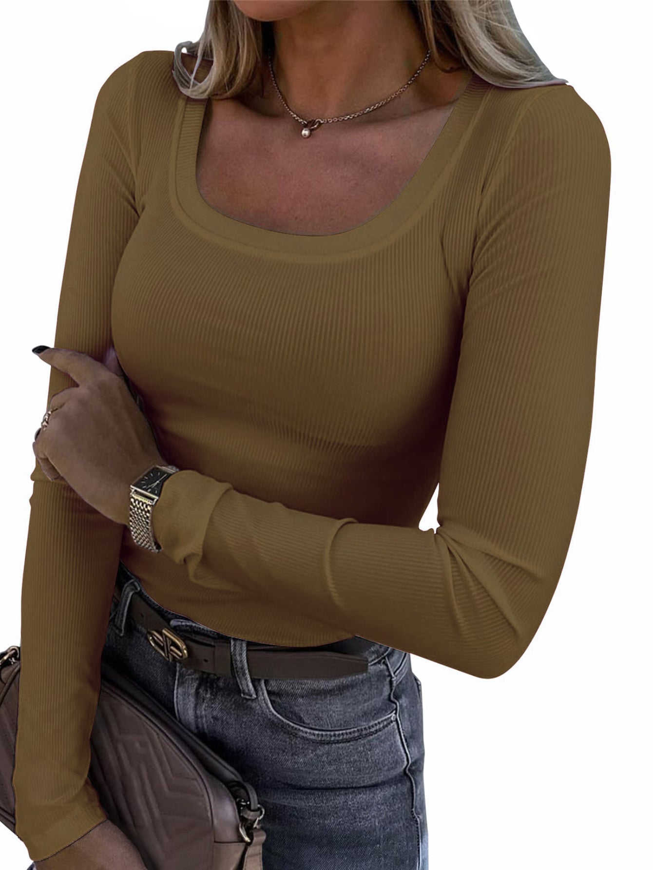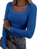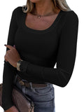 Casual Long Sleeve Square Neck T-shirt