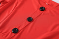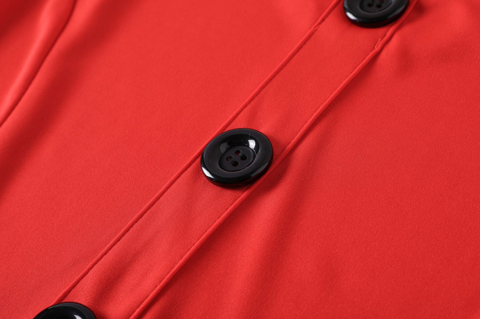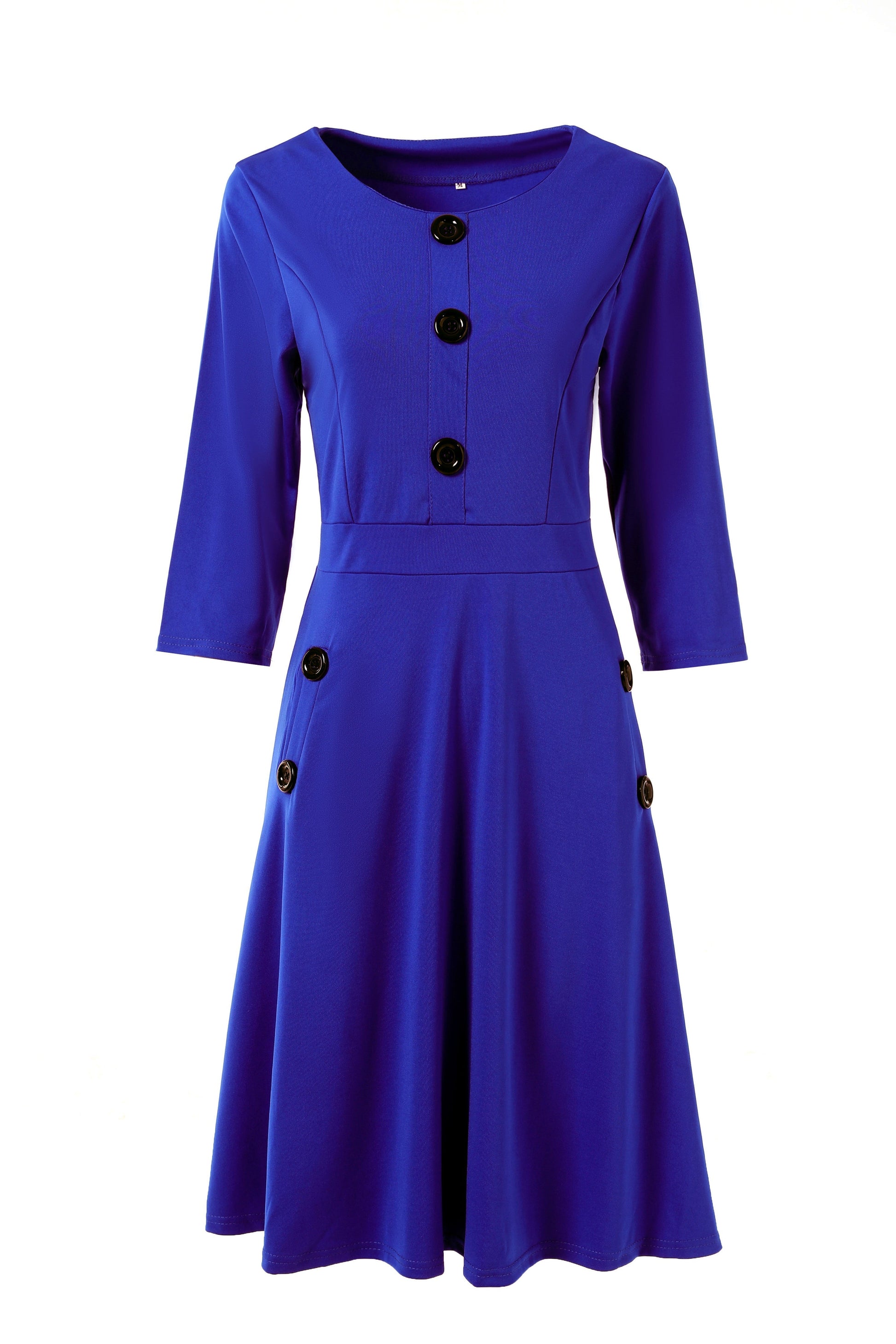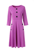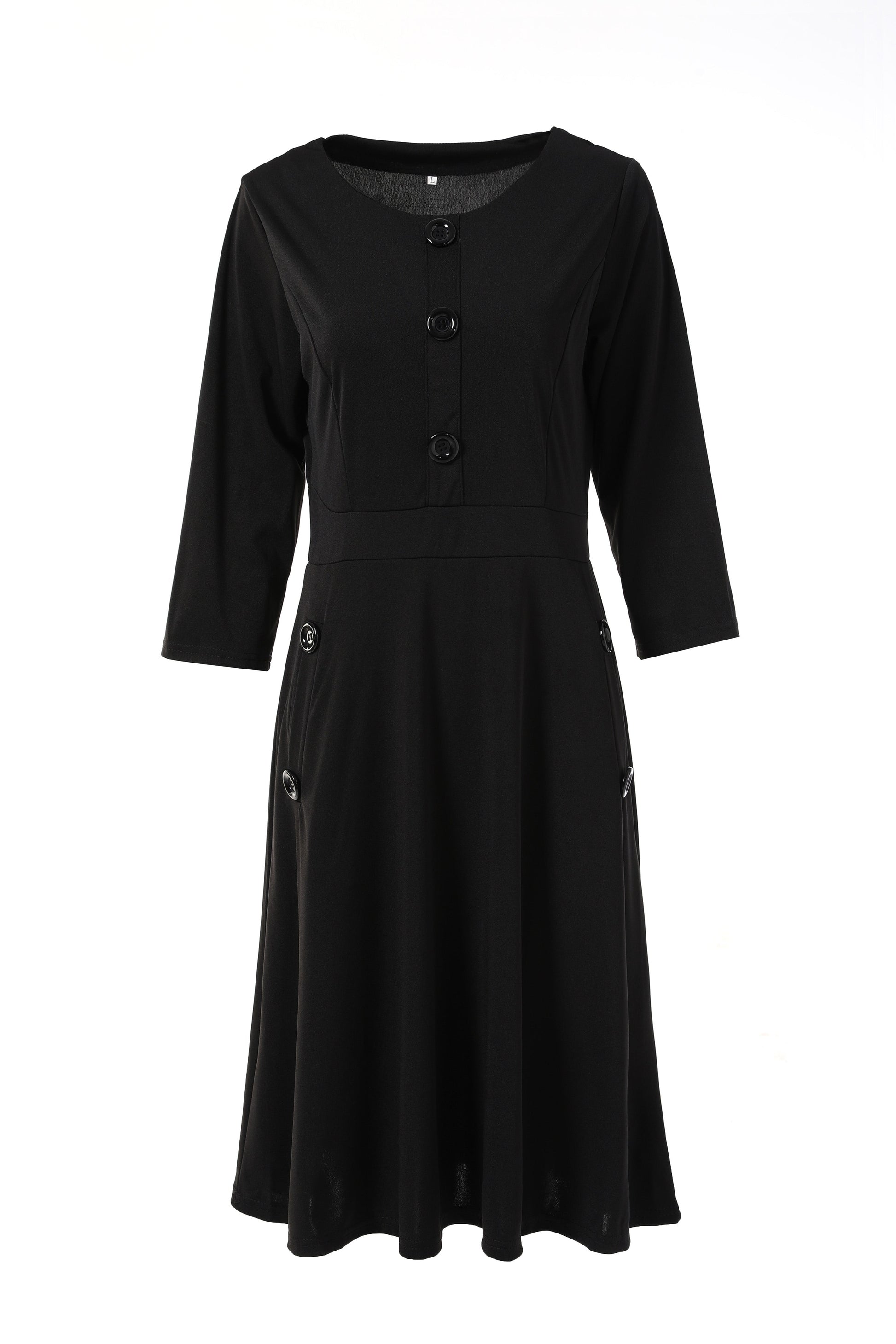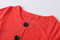 Sale Solid Button Crew Neck Half Sleeve High Waist Dress, Elegant Ruffled Hem Slim Midi Dress
