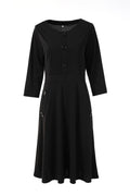 Solid Button Crew Neck Half Sleeve High Waist Dress, Elegant Ruffled Hem Slim Midi Dress