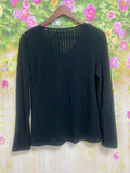 Black Rhinestone Sheer Mesh Slim Fit Long Sleeve Top