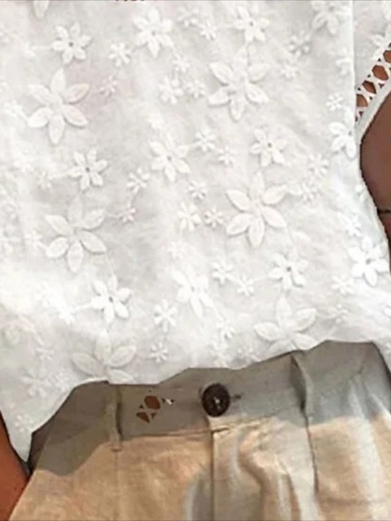 Sale Casual Contrast Lace Round Neck Long Sleeve T-Shirt