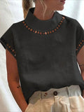 Solid Color Basic Casual Short Sleeve High Neck Regular Tops