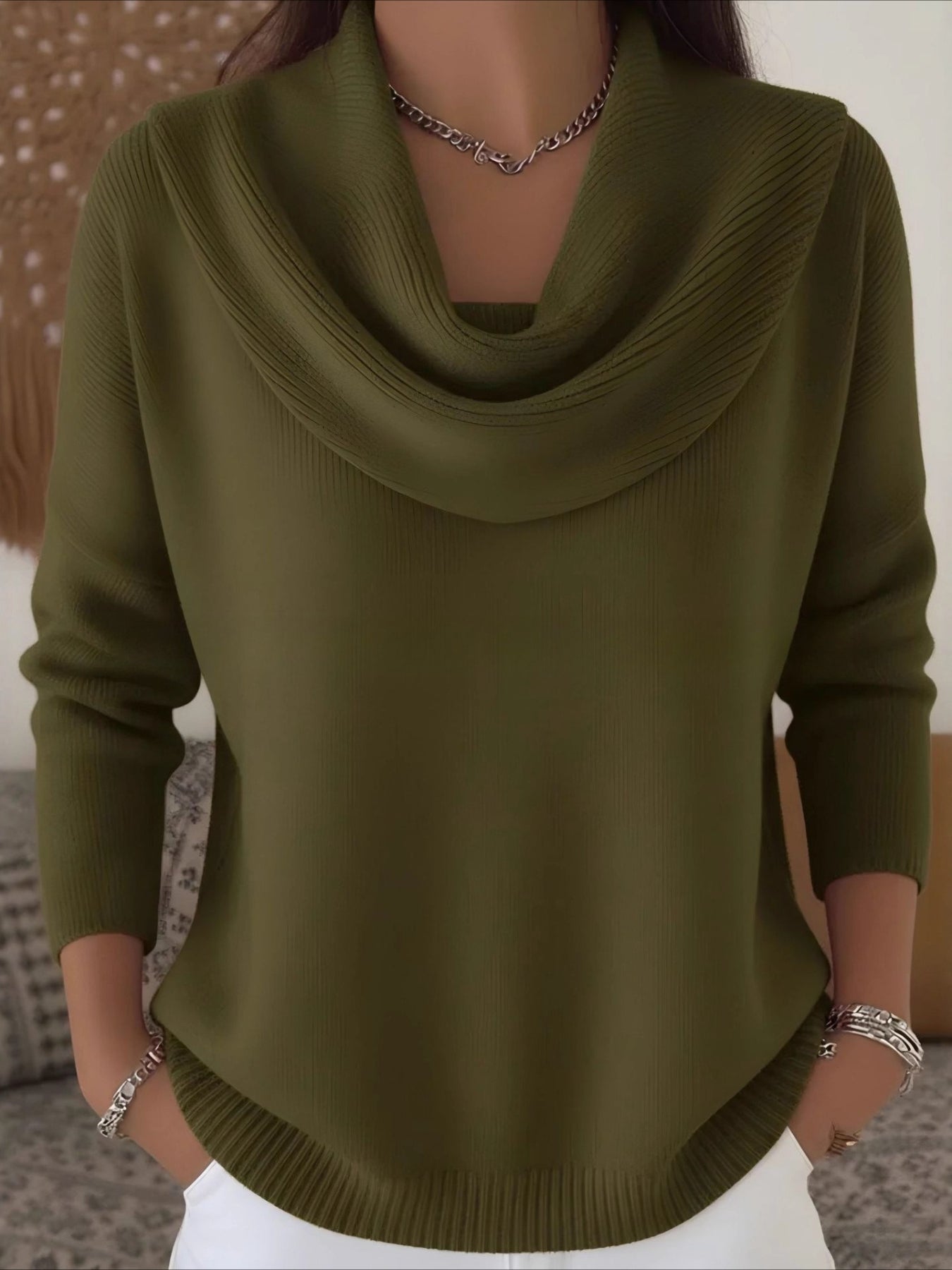Cowl Neck Long Sleeve Plain Regular Regular Fit Shirt