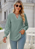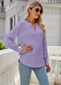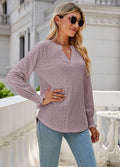 Sale Myosotis Notched Neck Terry Raw Hem Long Sleeve Top