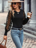 Sale Casual Contrast Lace Round Neck Long Sleeve T-Shirt