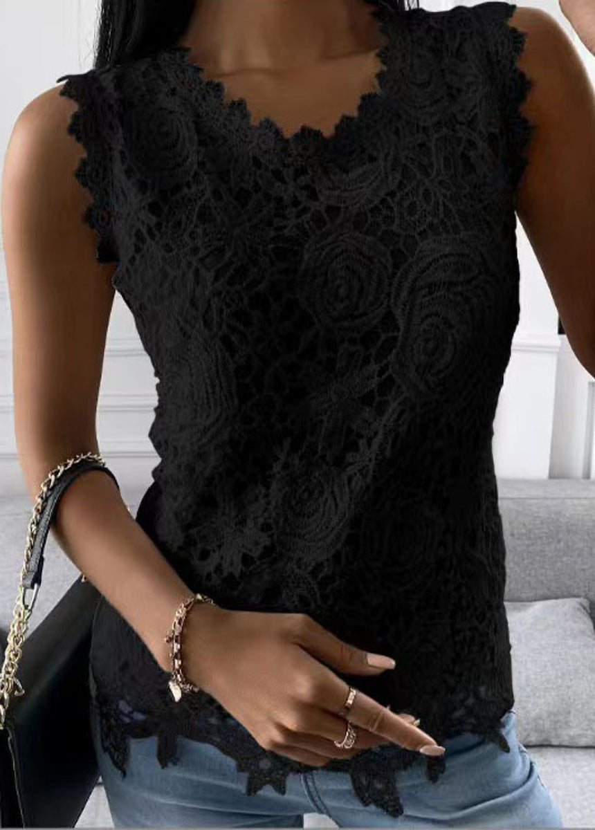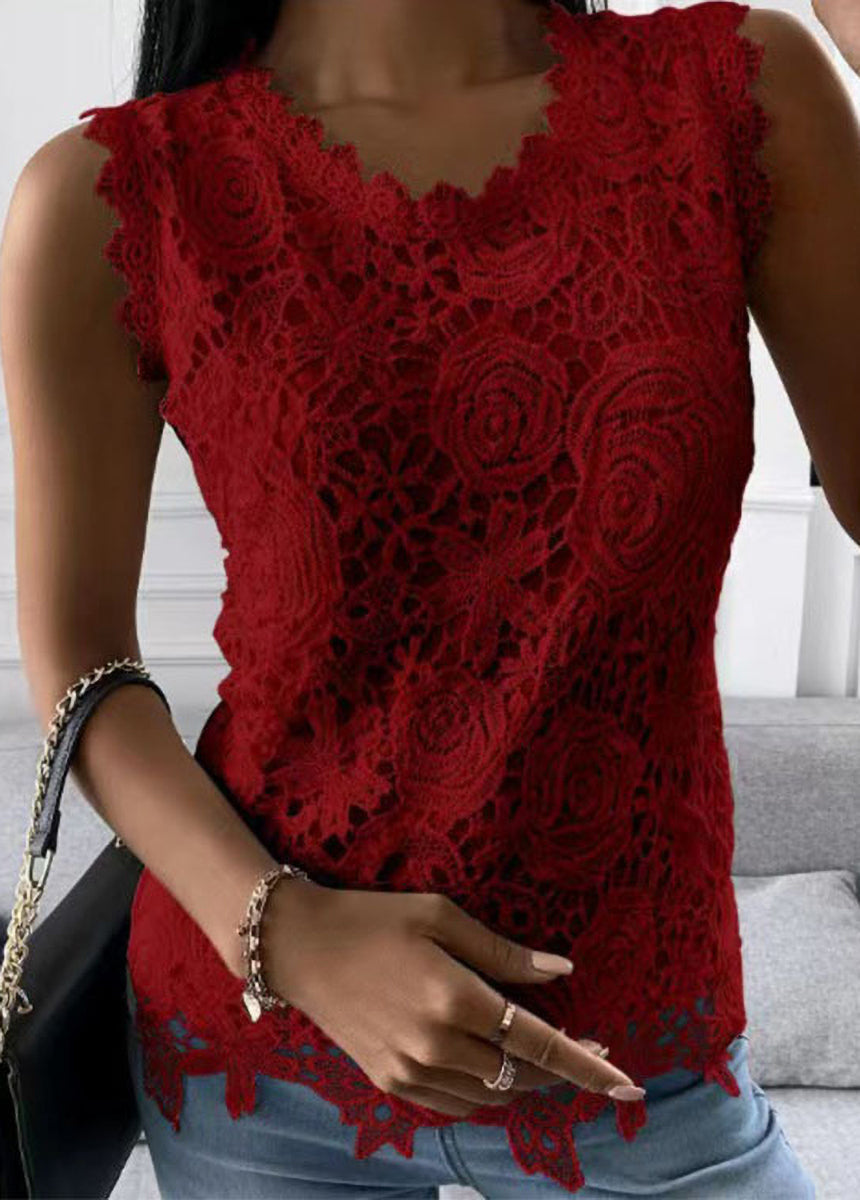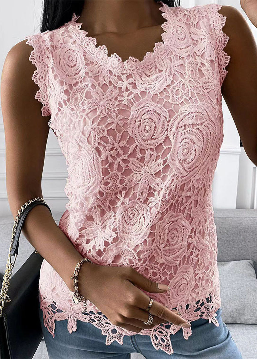 Solid Color Lace Pattern Vest Top