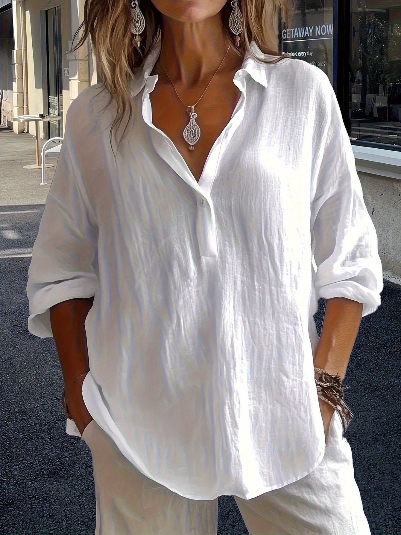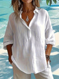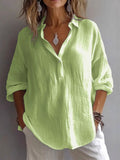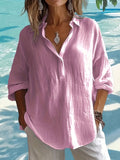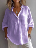 Solid Color Loose Long-Sleeved Lavender Linen V-Neck Shirt