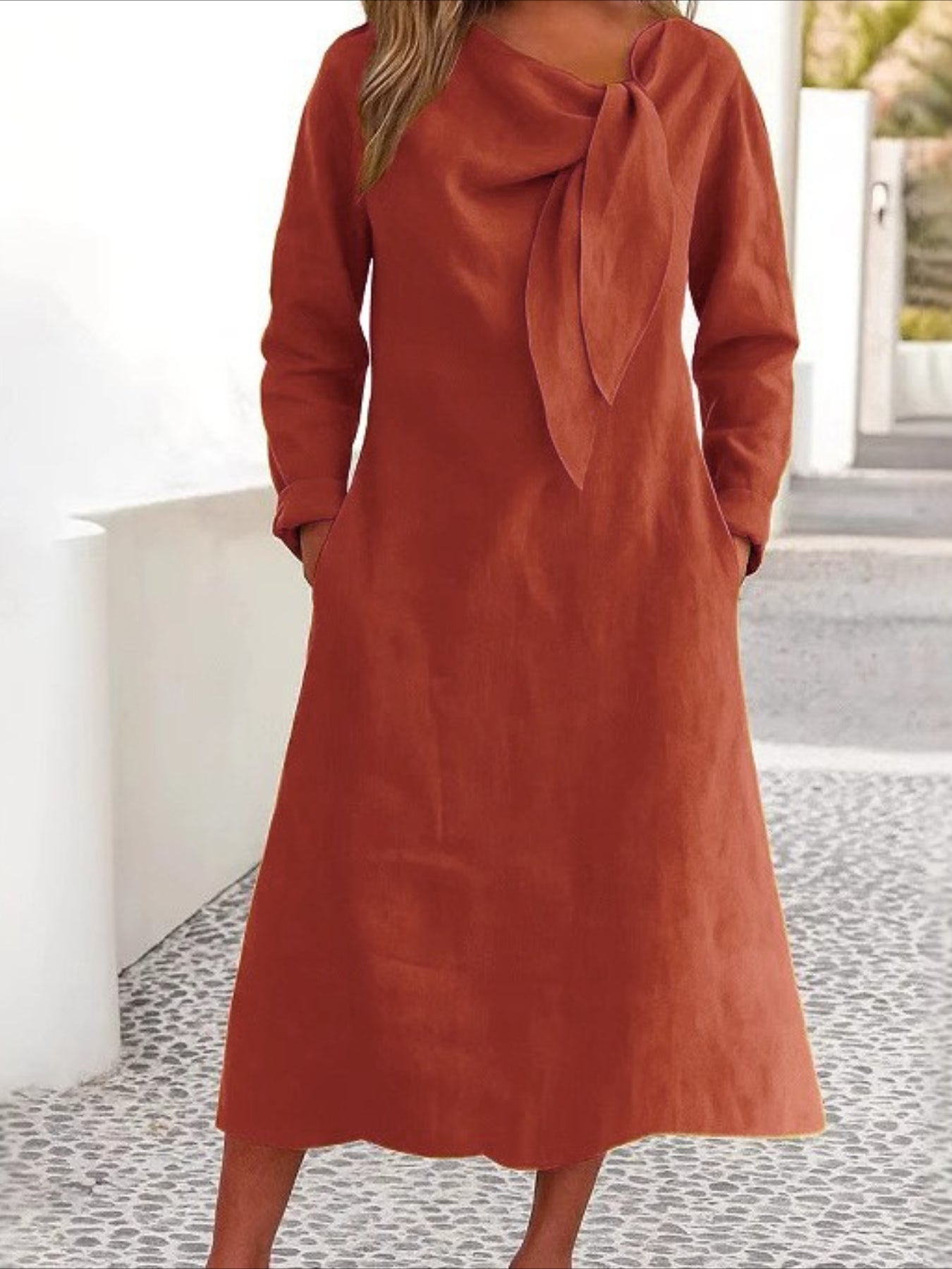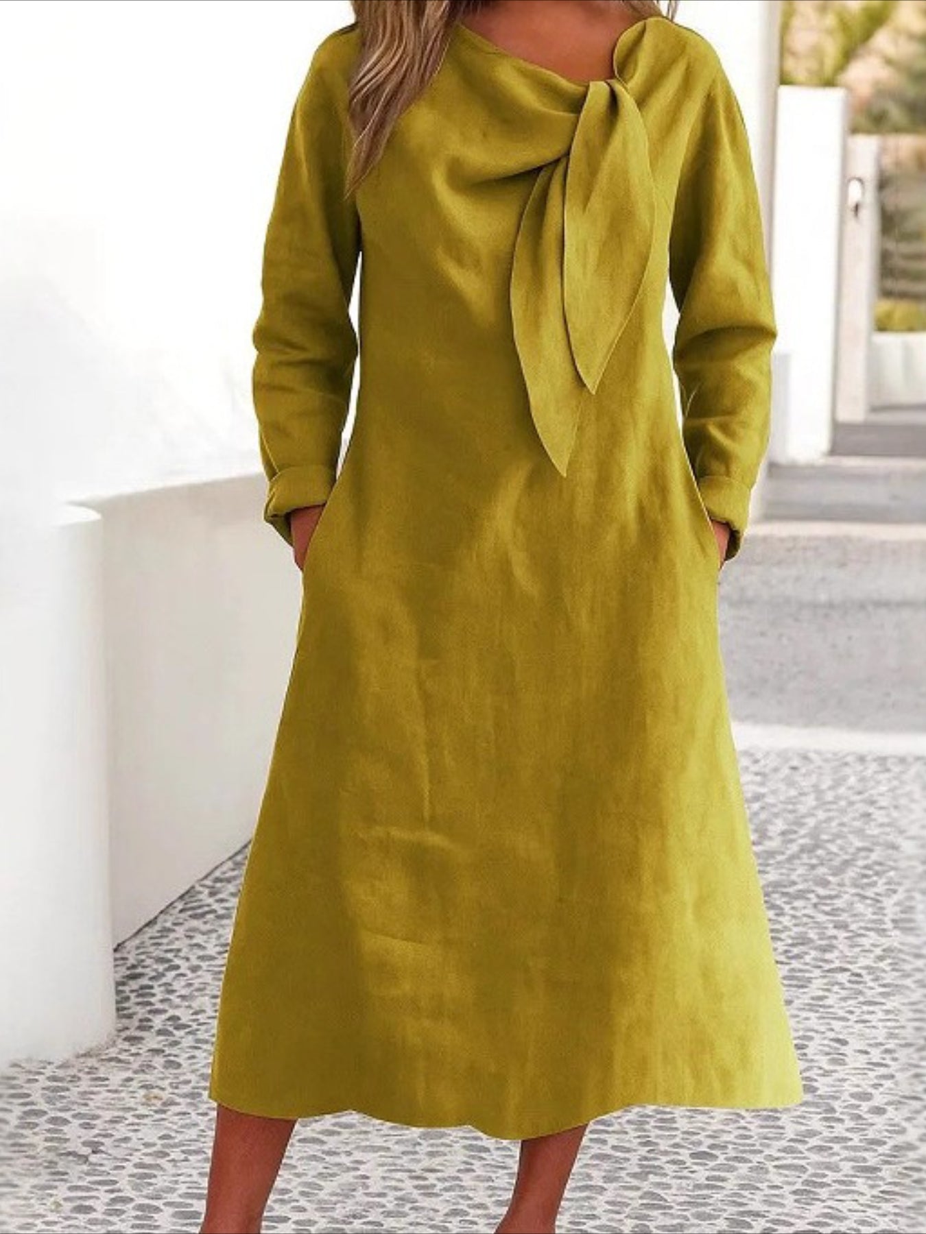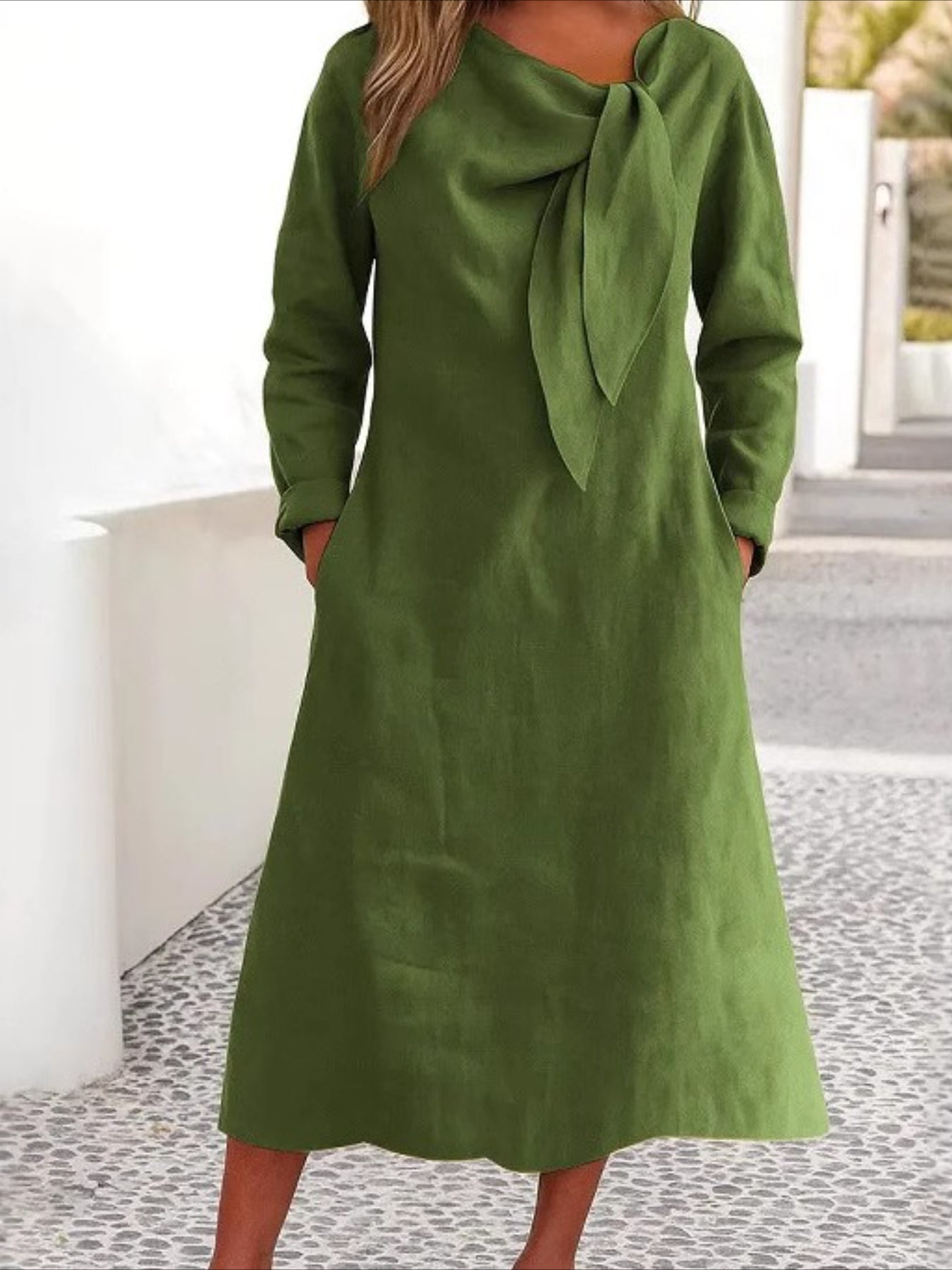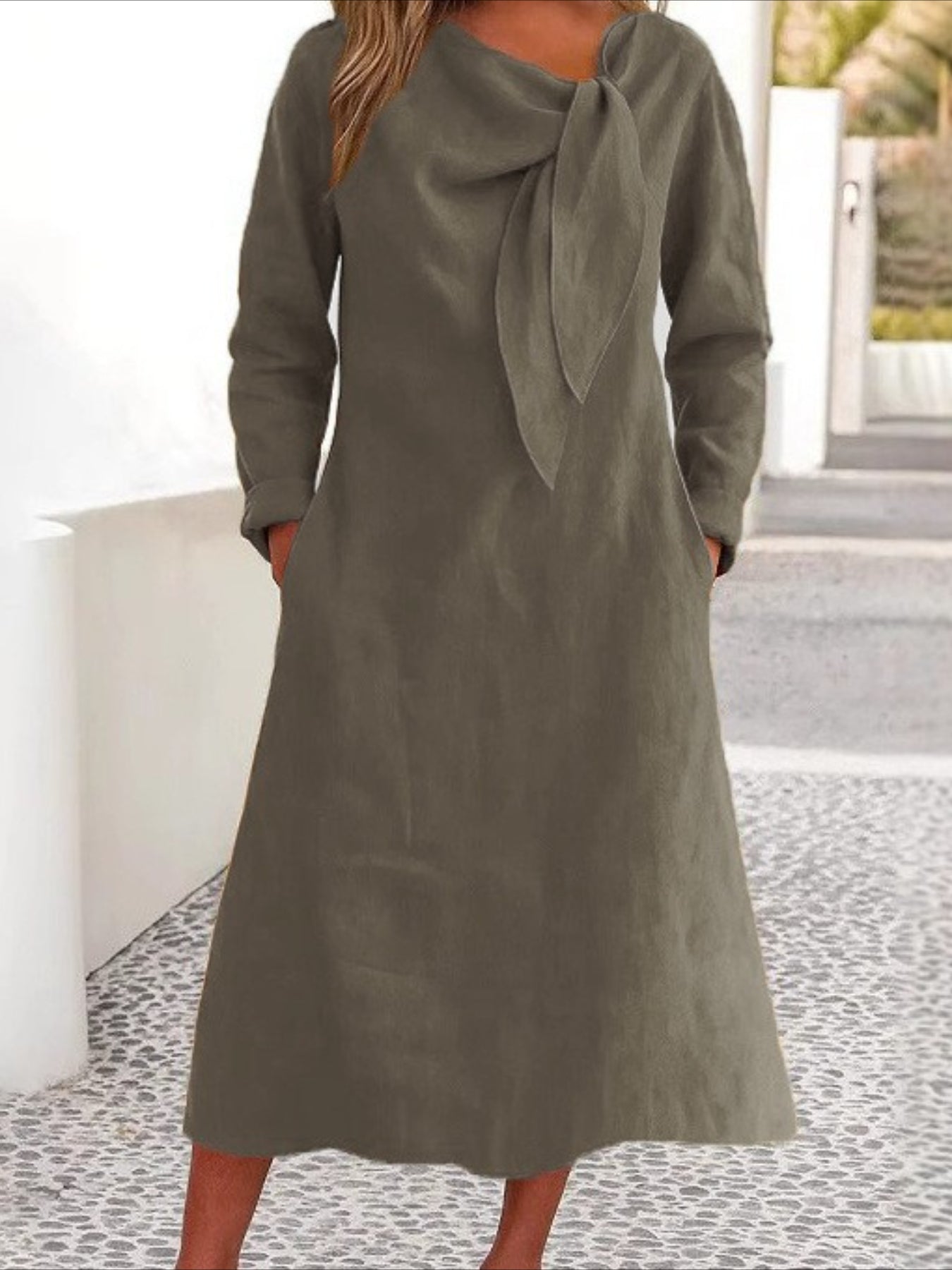 Solid Color Plain Regular Fit Casual Long Sleeve Dress
