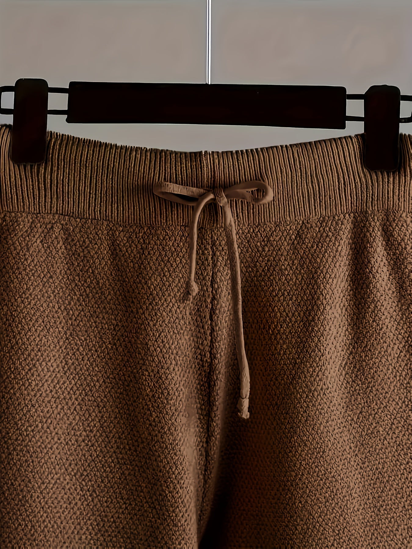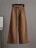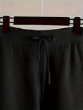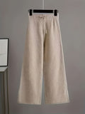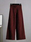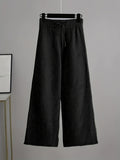 Solid Color Round Neck Sweater & Wide-Leg Pants Two-Piece Set
