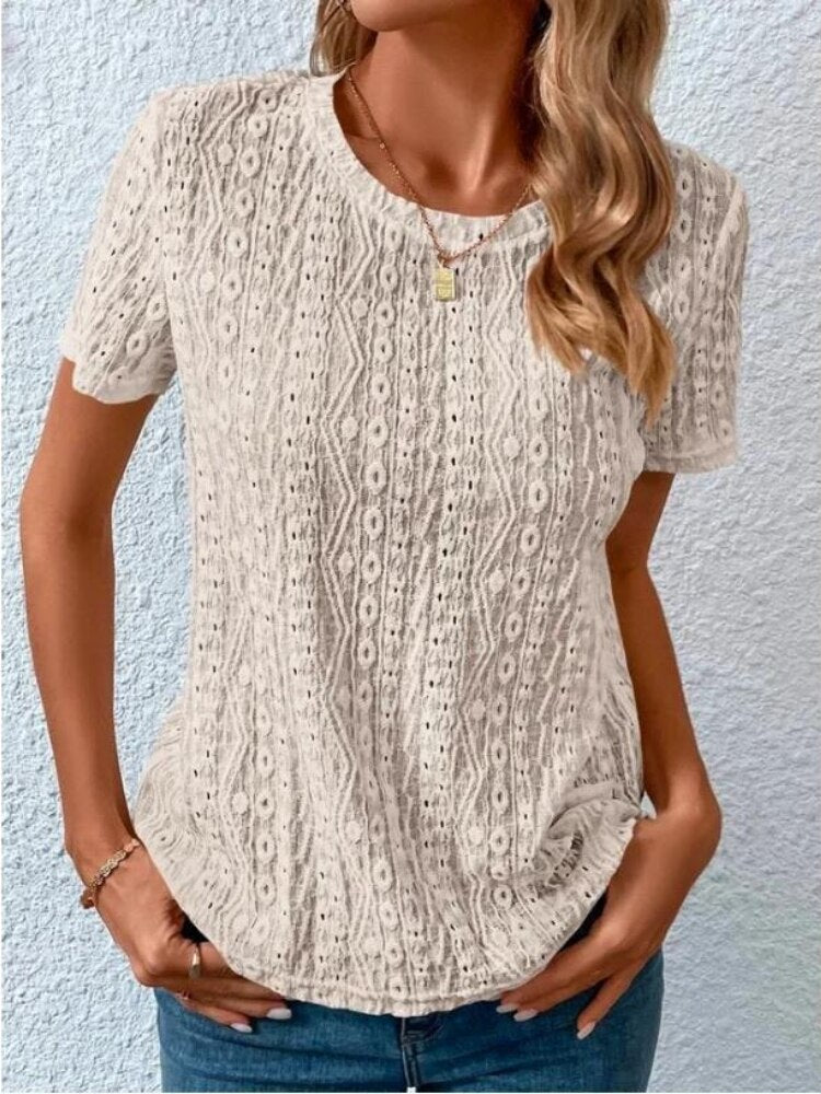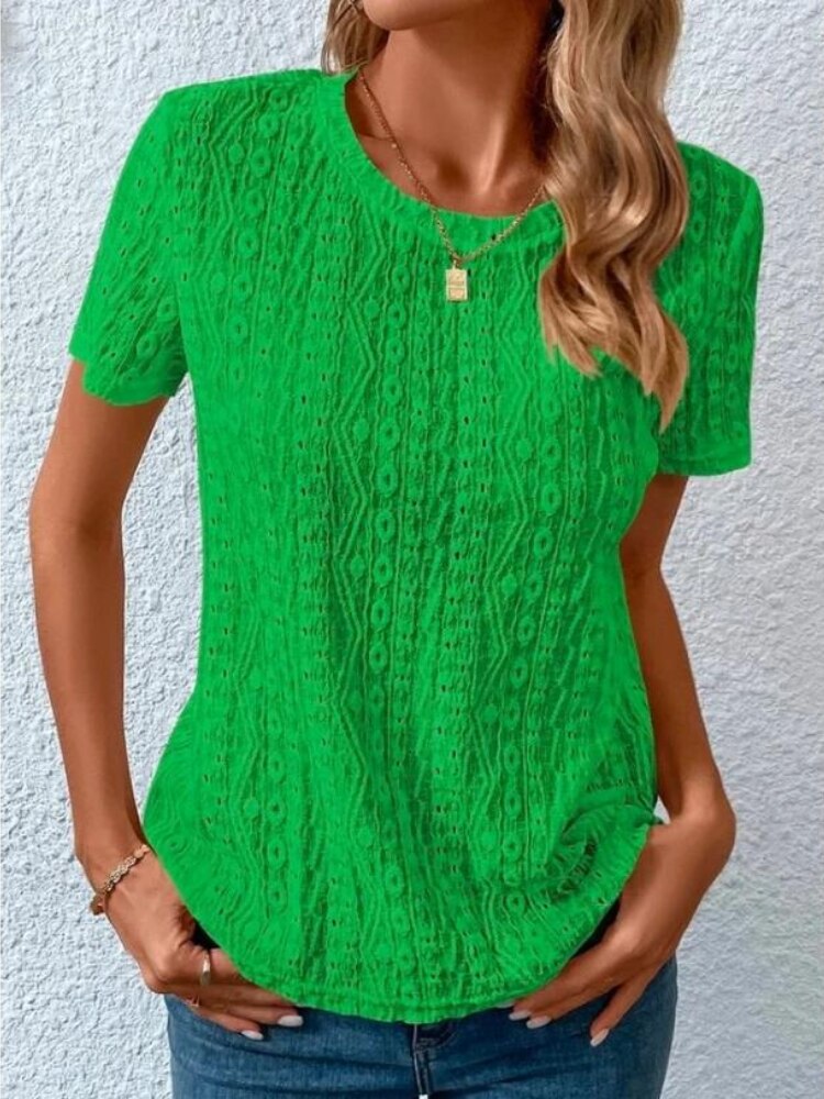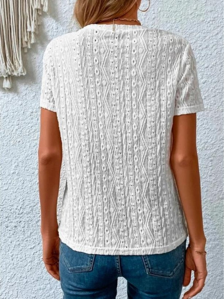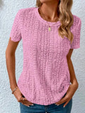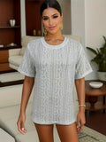 Solid Color Short Sleeve Hollow Out Round Neck T-Shirt