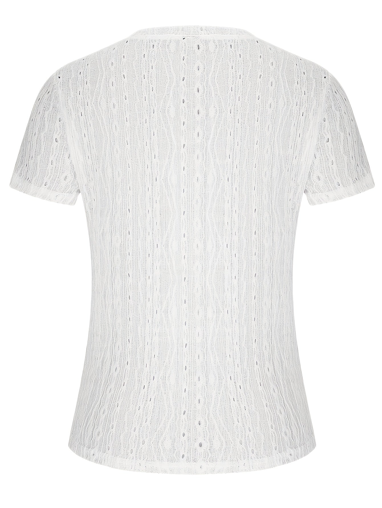 Sale Solid Color Short Sleeve Hollow Out Round Neck T-Shirt