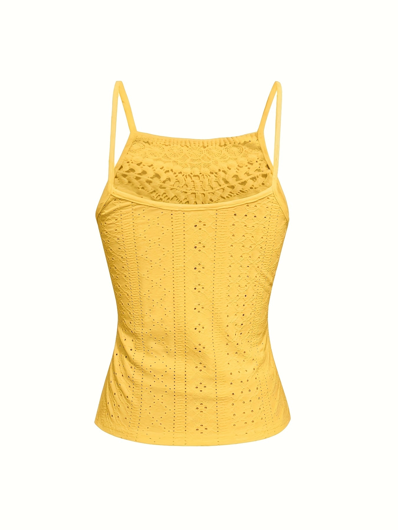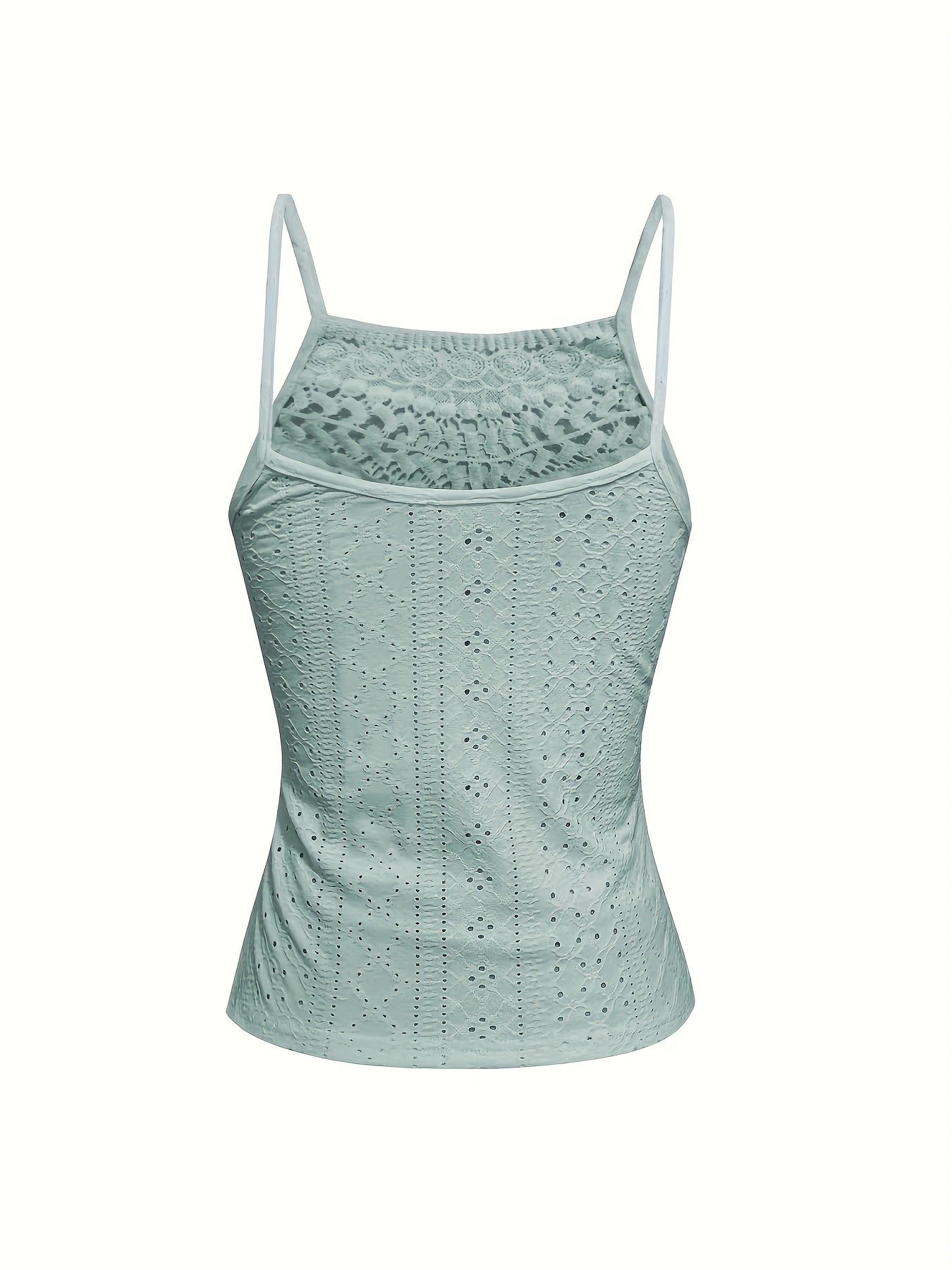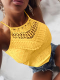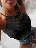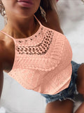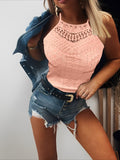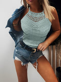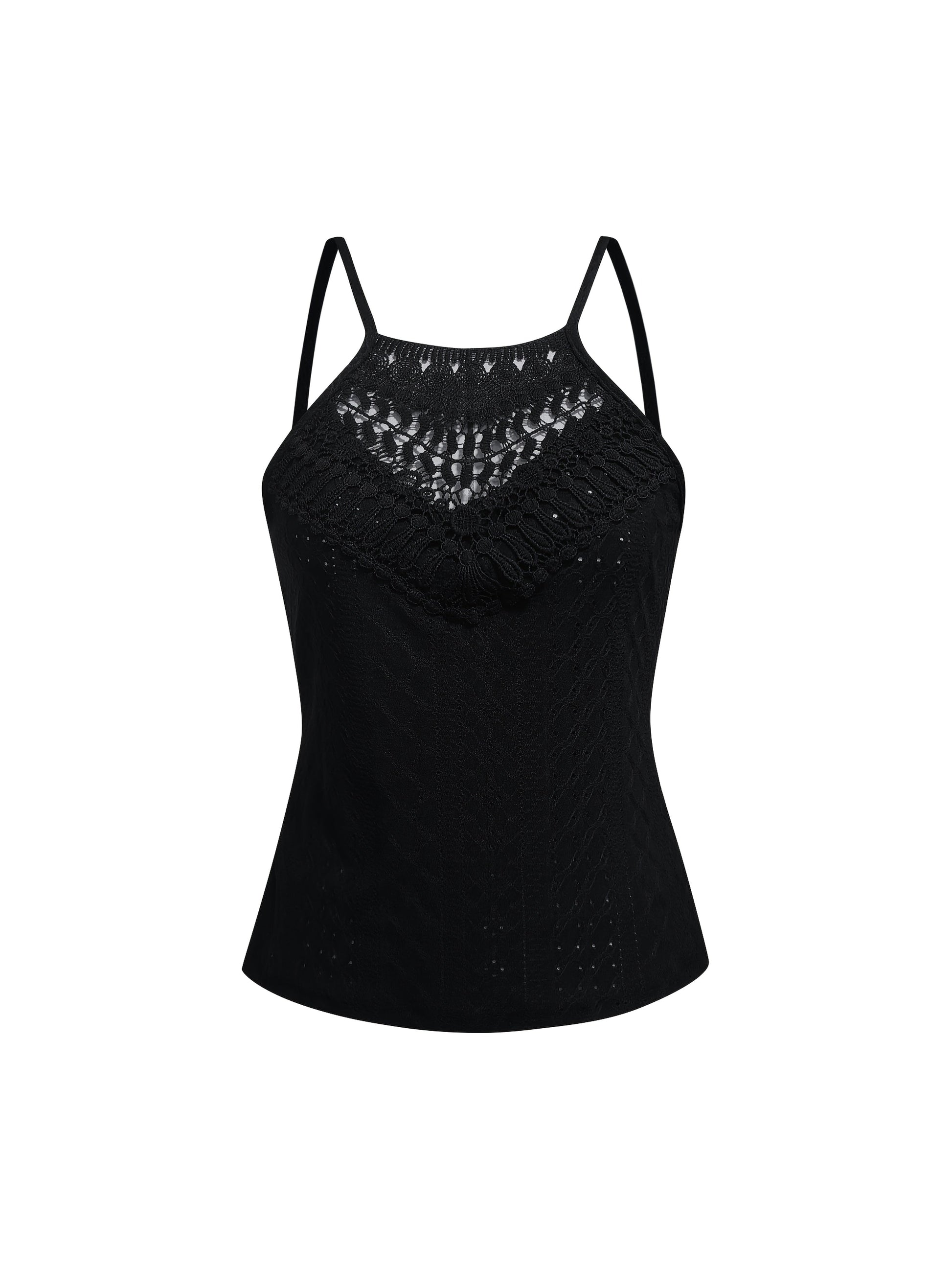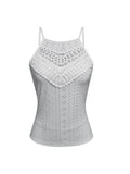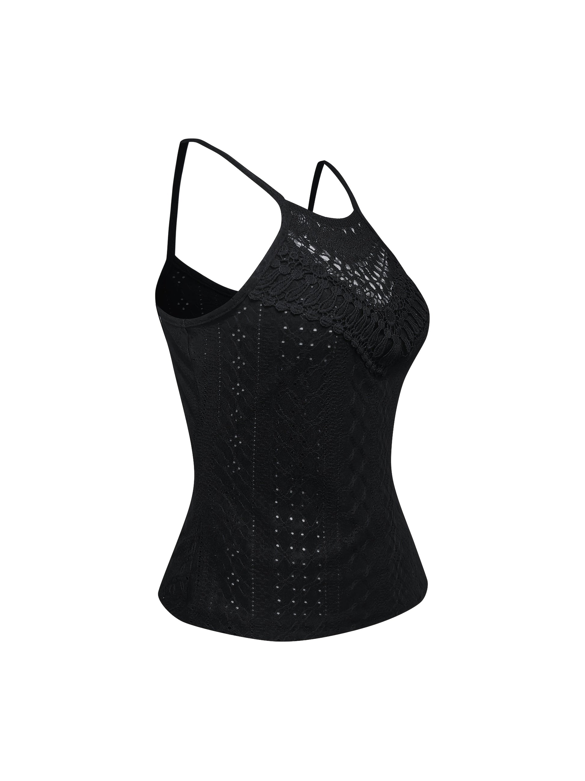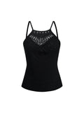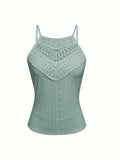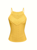 Solid Color Spandex Elegant Spaghetti Strap Slingback Hollow Knit Fabric Camis