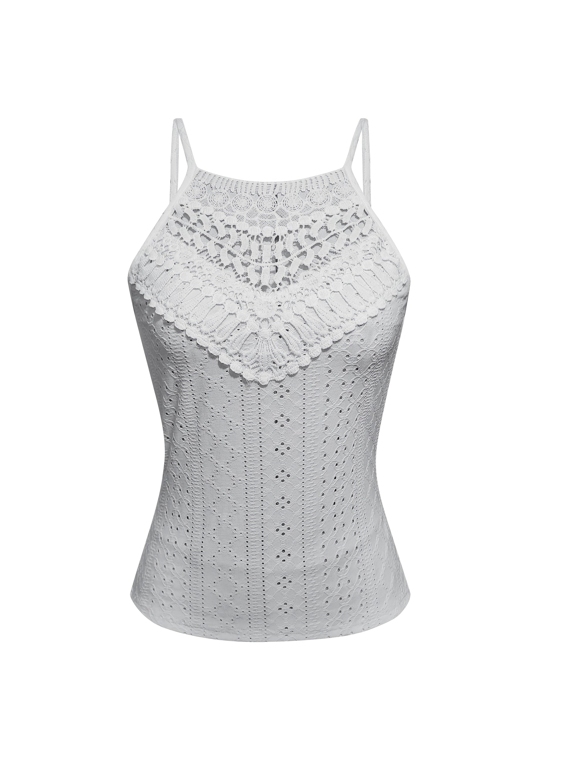 Sale Solid Color Spandex Elegant Spaghetti Strap Slingback Hollow Knit Fabric Camis