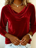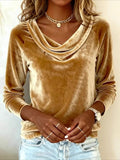 Solid Color Swinging Neck Long Sleeve Sexy Velvet T-shirt