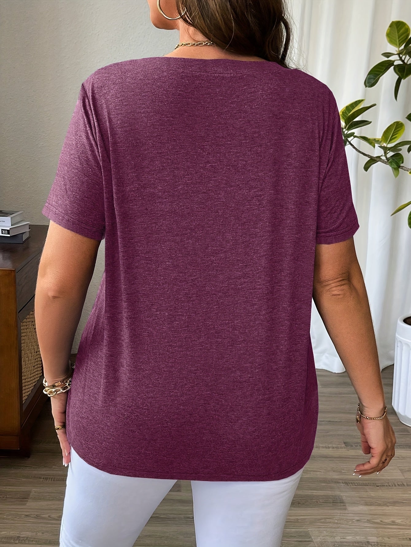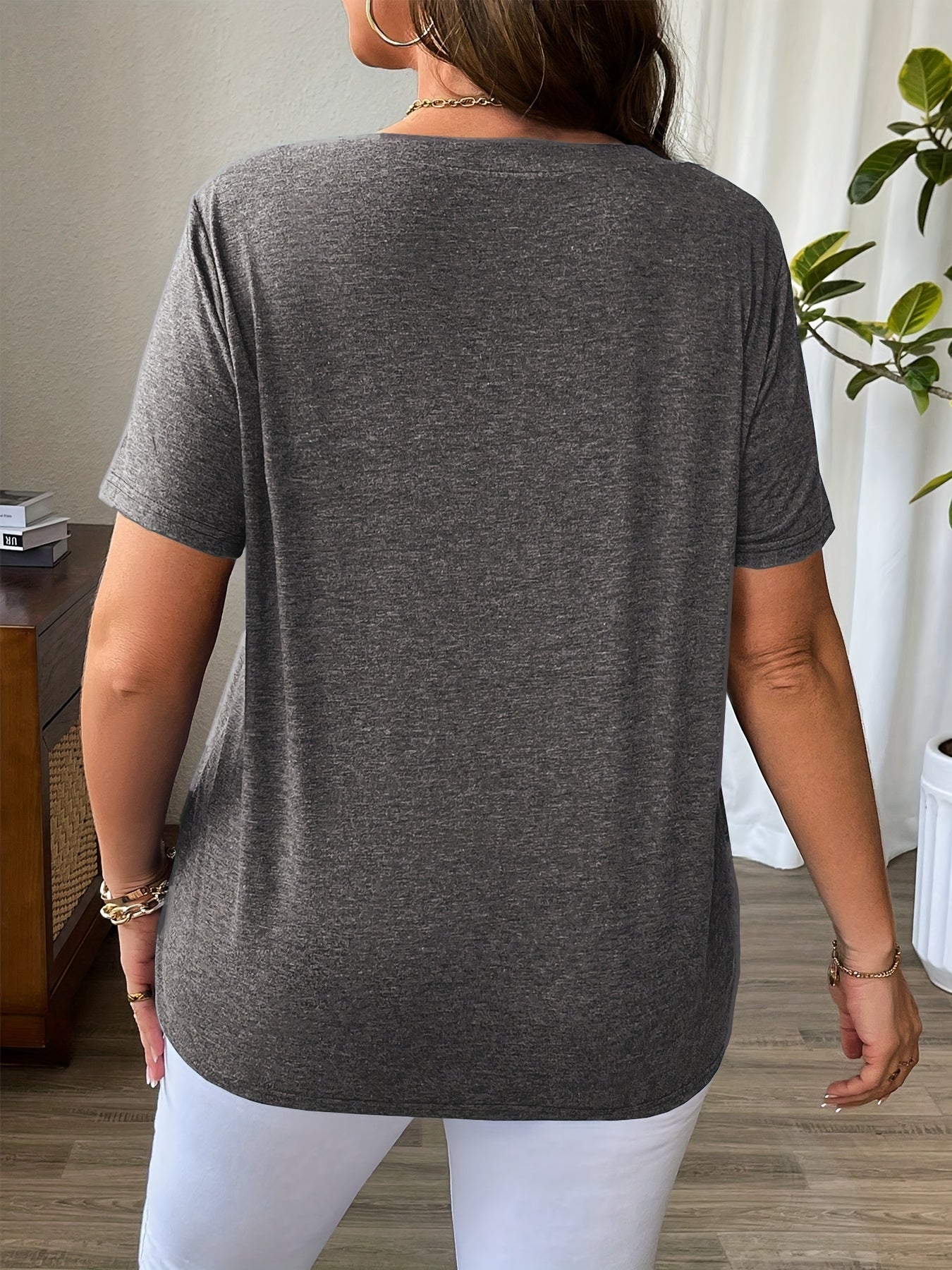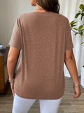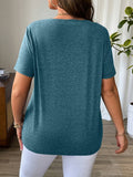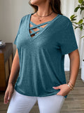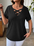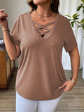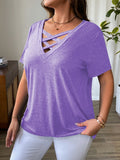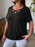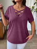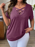 Solid Color T-Shirt with Crisscross V-Neck and Short Sleeves