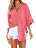 Sale Women's Casual Notch Neck Blouse with Split Sleeves
