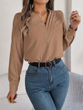 Solid Color V Neck Blouse, Elegant Long Sleeve Blouse