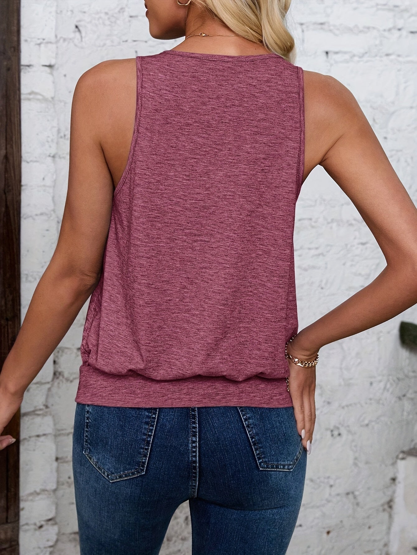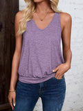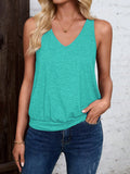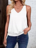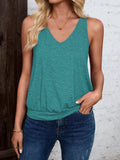 Sale Solid Color V Neck Tank Top, Casual Sleeveless Top