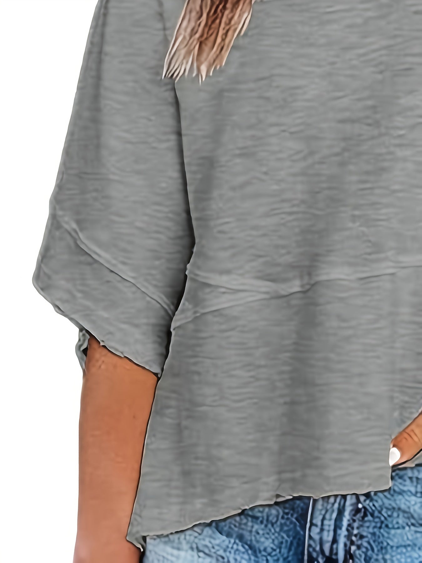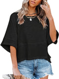 Sale Solid Simple Knit Sweater, Casual Crew Neck 3/4 Sleeve Sweater
